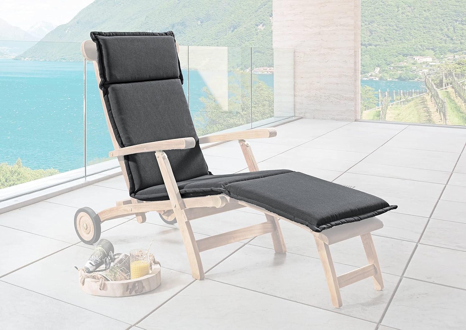 - Premium Polsterauflage für Deckchair in Anthrazit Struktur mit attraktivem Stehsaum und flexiblen Haltebändern