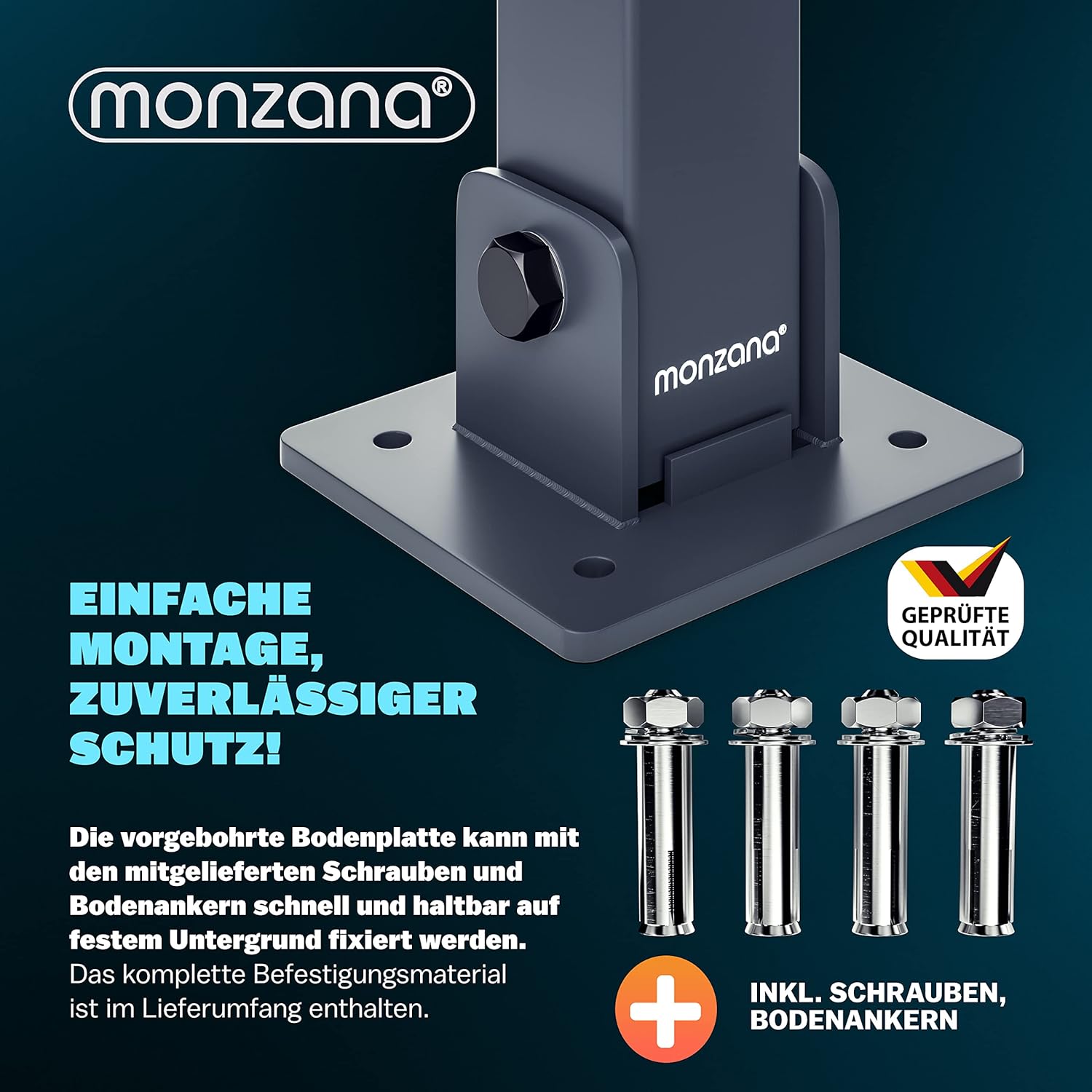 - DIREKT LOSLEGEN: Das komplette Befestigungsmaterial, sowie 3 Schlüssel je Absperrpfosten sind im Lieferumfang enthalten. Die Bodenplatte ist vorgebohrt, wodurch die Befestigung auf festem Untergrund schnell und einfach mit den mitgelieferten Schrauben und Bodenankern erfolgt. Einfach Löcher in Boden bohren und Schrauben reindrehen.