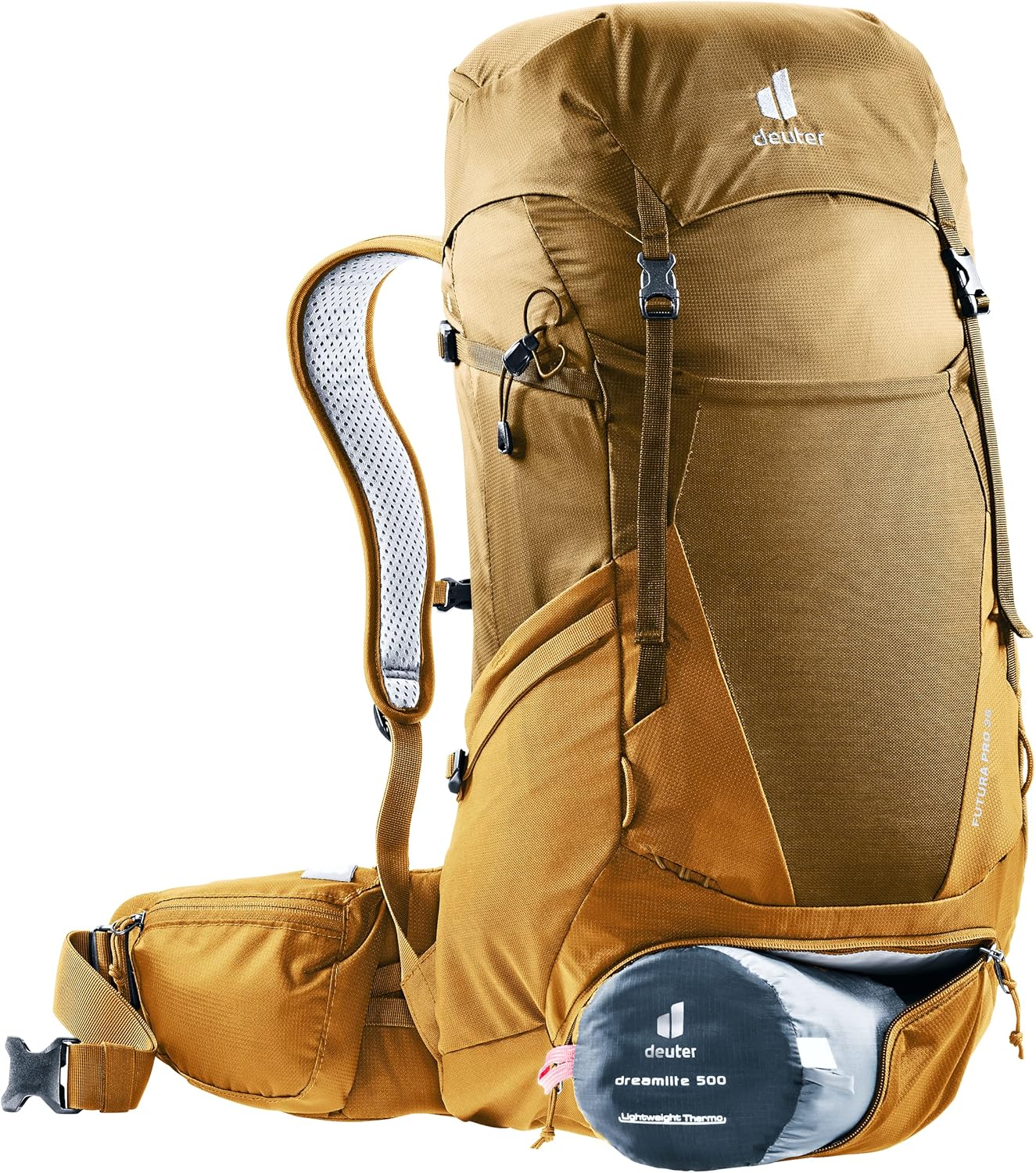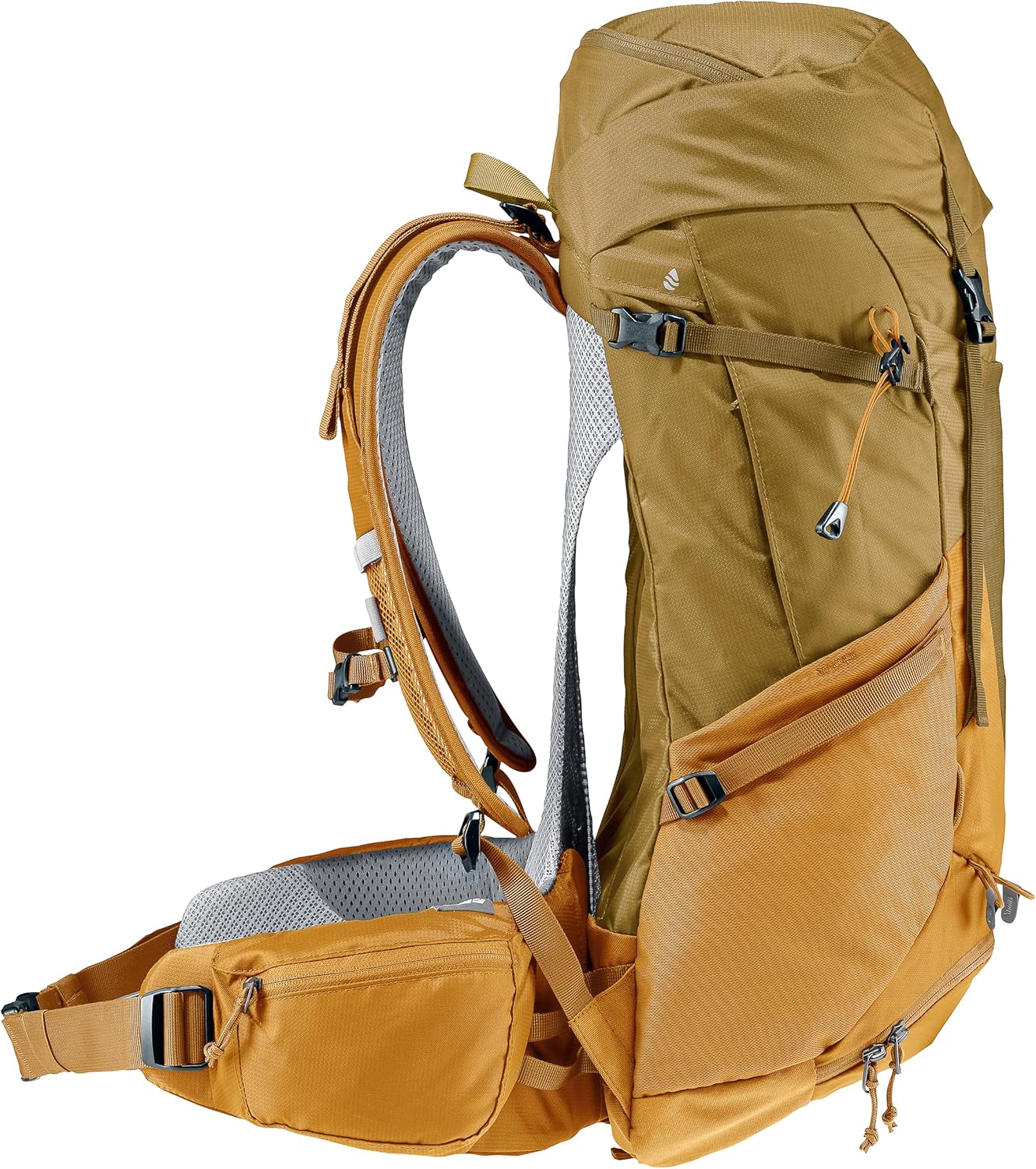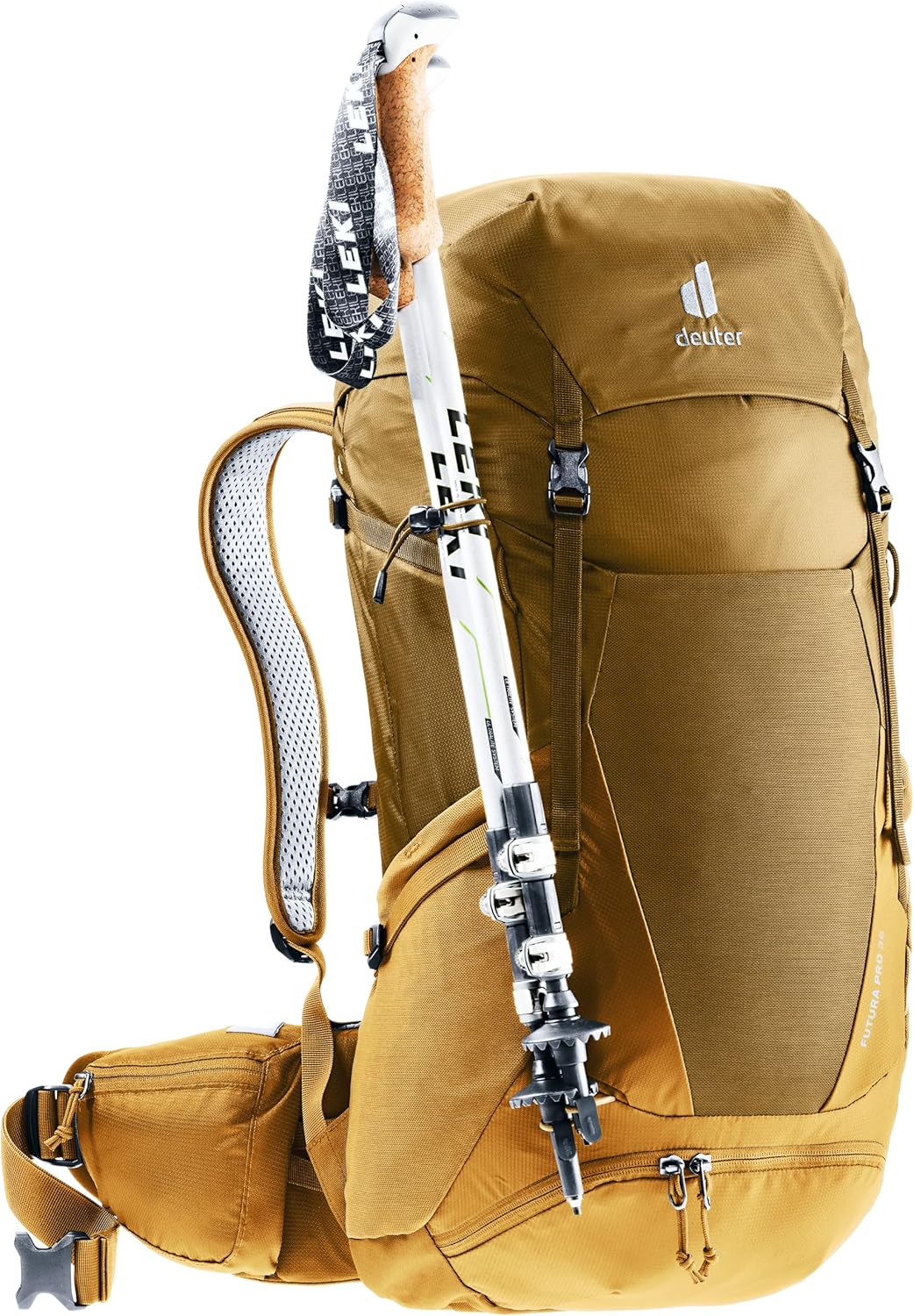 PRODUKTBESCHREIBUNGEN Der bis ins Detail durchdachte Futura Pro wurde für Mehrtagestouren entwickelt, bei denen es an Komfort nicht mangeln darf. Daher besitzt der Wanderrucksack das ergonomische Aircomfort Sensic Pro Netzrücken System. Dieses sorgt aufgrund des neuartigen Mesh für maximale Rückenbelüftung. Zudem ermöglichen die beweglichen VariFlex ECL Hüftflossen mit ergonomischen Polstereinsätzen ein energiesparendes Tragen. Dank der klaren Fächeraufteilung lässt sich das Gepäck im Deckelfach, in seitlichen Balgtaschen, im separaten Bodenfach sowie im geräumigen Hauptfach sinnvoll und leicht verstauen. 210D Polyamid Recycledycled, 600D Polyester Mehr