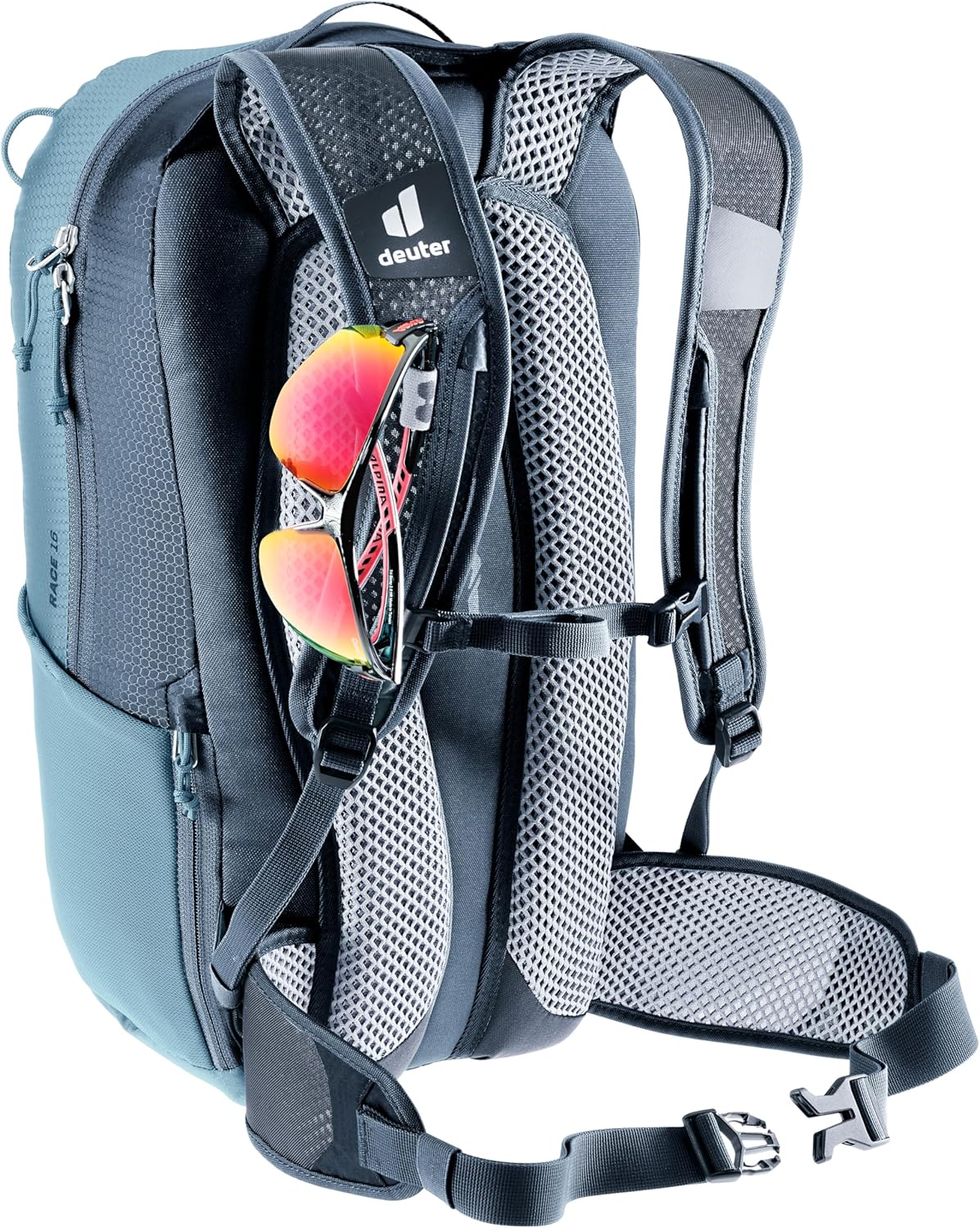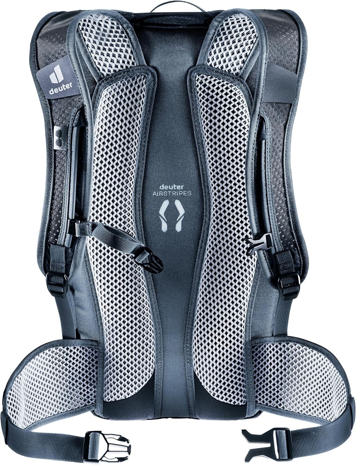 - Die ergonomisch geformte, leichte Netz-Hüftflossen und -Schulterträger halten den Rucksack optimal in Position.