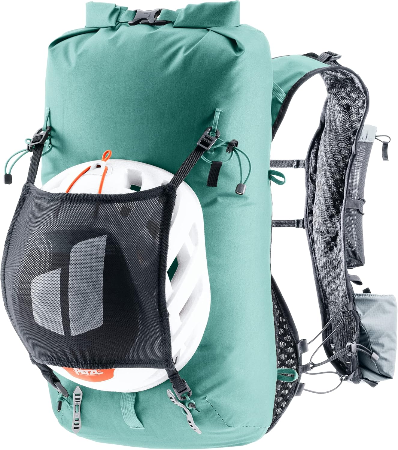 PRODUKTBESCHREIBUNGEN Strapazierfähiges Material, getapte, wasserdicht versiegelte Nähte, TPU beschichtete Reissverschlüsse und die Deckelkonstruktion schützen den Inhalt des leichten Alpinrucksacks sicher vor dem Eindringen von Nässe. Die breiten, westenförmigen Schulterträger und das weiche Rückenmaterial sorgen für einen festen, körpernahen Sitz und uneingeschränkte Bewegungsfreiheit beim Ausloten der persönlichen Grenzen im vielseitigen Terrain. Das Westentragesystem hält dabei das Notwendigste stets griffbereit. Die elastischen Befestigungsriemen lassen sich je nach Einsatz und Ausrüstung modifizieren und komprimieren.