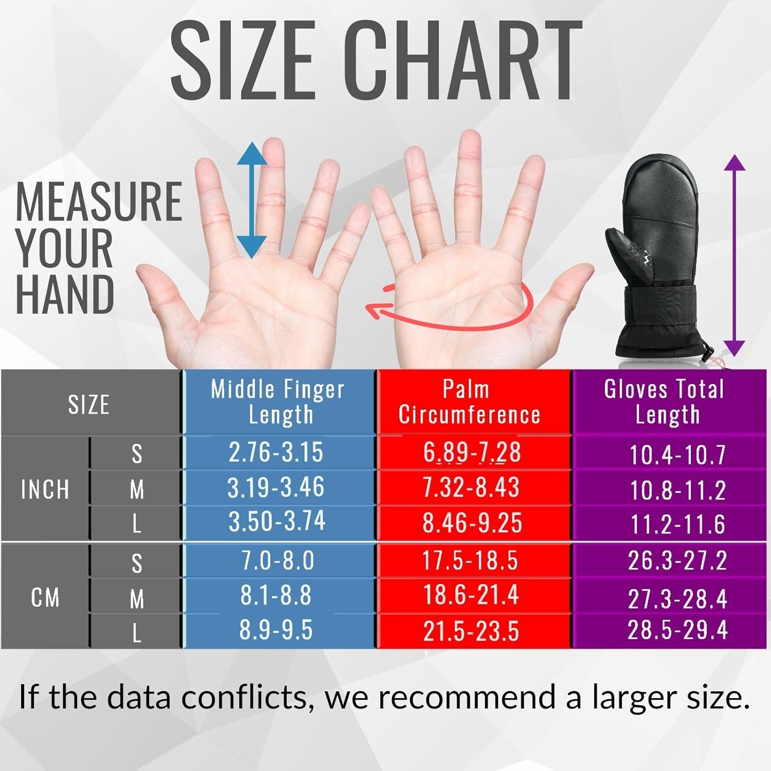 - Bequem und praktisch: Dank der Touchscreen-Kompatibilität müssen Sie die Handschuhe nicht ausziehen, um das Telefon beim Wintersport zu benutzen; In der Reissverschlusstasche auf der Rückseite der Fäustlinge sind Ihre Kleinigkeiten wie Skipass,