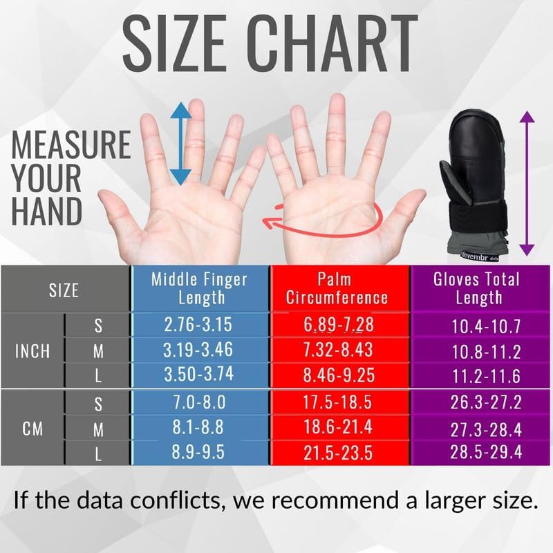 - Handgelenk- und Handflächenschutz: Devembr-Skifäustlinge sind mit einem Paar abnehmbarer Handgelenkschützer ausgestattet und minimieren das Risiko von Handgelenksverletzungen. Die Handfläche ist zum Schutz vor Abrieb und für Langlebigkeit mit