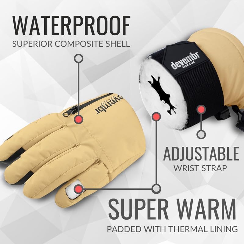 - Handgelenk- und Handflächenschutz: Devembr-Skihandschuhe sind mit einem Paar abnehmbarer Handgelenkschützer ausgestattet und minimieren das Risiko von Handgelenksverletzungen. Die Handfläche ist zum Schutz vor Abrieb und für Langlebigkeit mit
