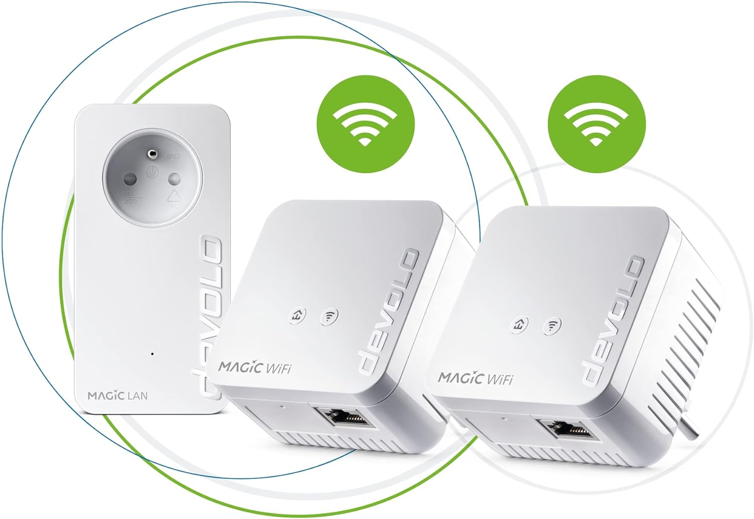 - Multiroom-Set mit 3 separaten Powerline-Adaptern, alle mit einem Ethernet-Port, WLAN Access Point