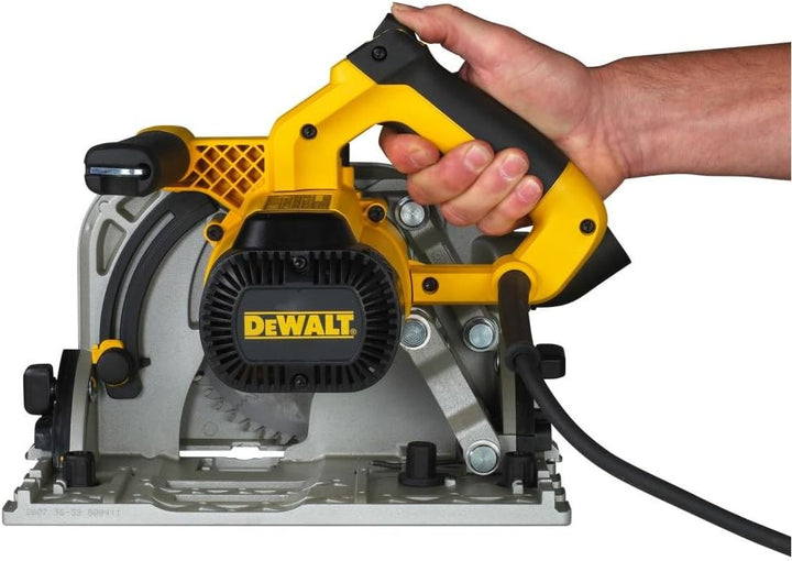- Paralleler Tauchmechanismus und (in Verbindung mit DeWalt Führungsschienen) integrierter Rückschlagstopp