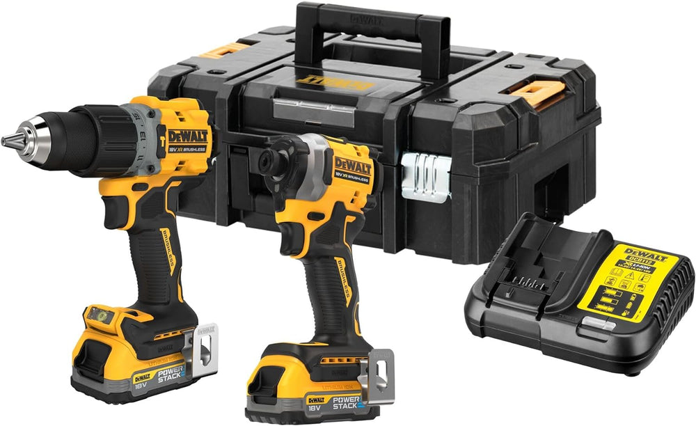 - Lieferumfang: 1x 18V Akku-Kombopack bestehend aus: 1x DCD805 Akku-Schlagbohrschrauber, 1x DCF850 ¼“ Akku-Schlagschrauber, 2x 18V/1,7Ah Powerstack-Akkus DCBP034, 1x System-Schnellladegerät DCB115, T STAK-Box II)