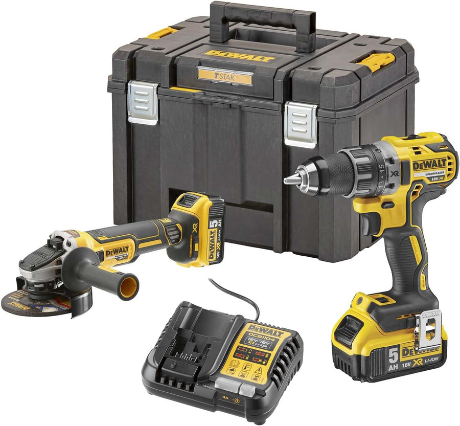 DEWALT 18V/2x5Ah Akku-Kombopack, im TSTAK-Box DCD791, DCG405 (DeWALT DCK2020P2T-QW)