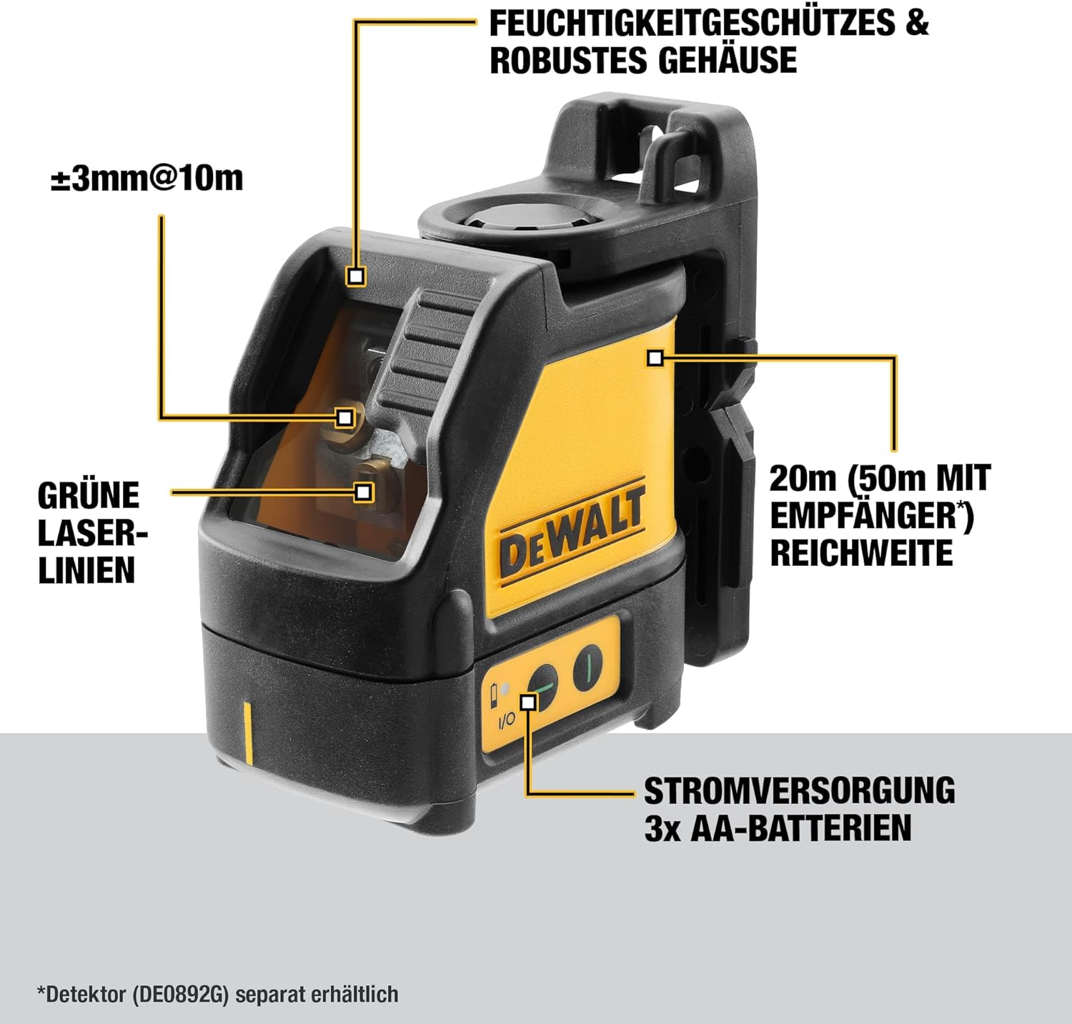 - Lieferumfang: 1 x Kreuzlinien-Laser mit gründer Diode, 3 x AA-Batterien, 1x Wandhalterung, 1x Transportkoffer