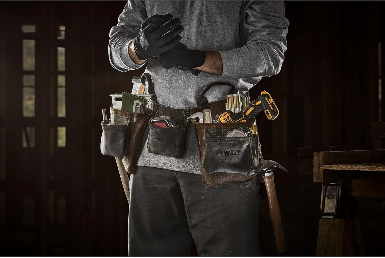 DEWALT Leder Werkzeuggürtel, langlebig, 11 Tasche Professionelle Gürtel (DWST550112) Werkzeugschürze