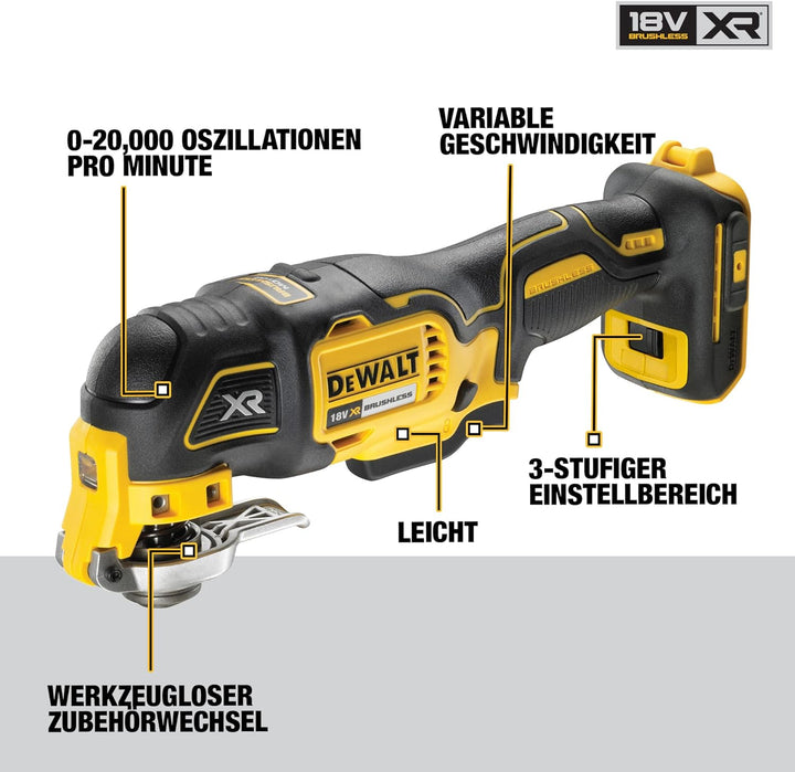 - 3-stufiger Einstellbereich der Oszillationen ermöglicht optimale Anpassung an das zu bearbeitenden Material und an die jeweiligen Einsatzwerkzeuge