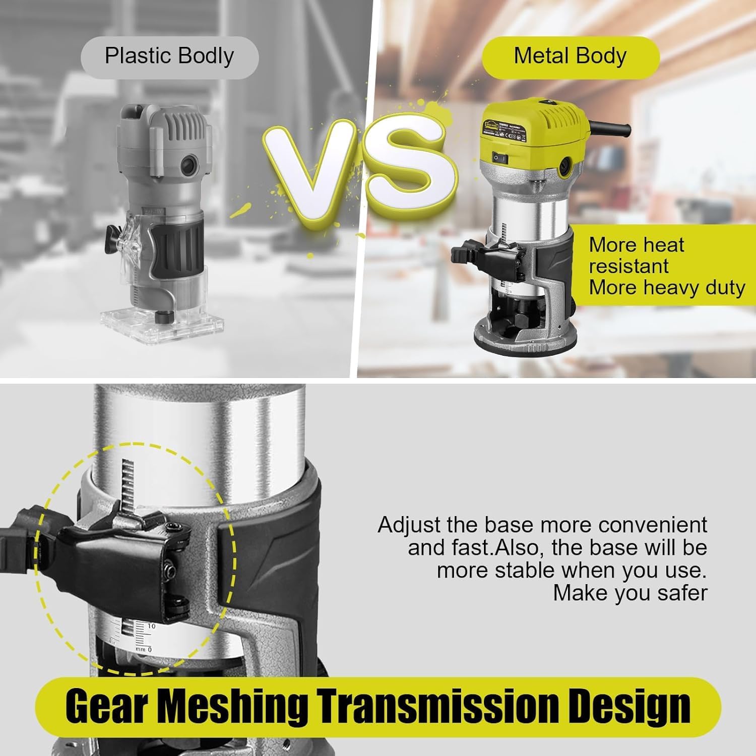 - Leistungsstark und einstellbar: Ein Vollkupfermotor mit 220 – 240 V 50 Hz 710 W mit einer variablen Geschwindigkeit von 13.000 bis 33.000 U/min kann eine grosse Leistung für die schwierigsten Tischleranwendungen bieten.