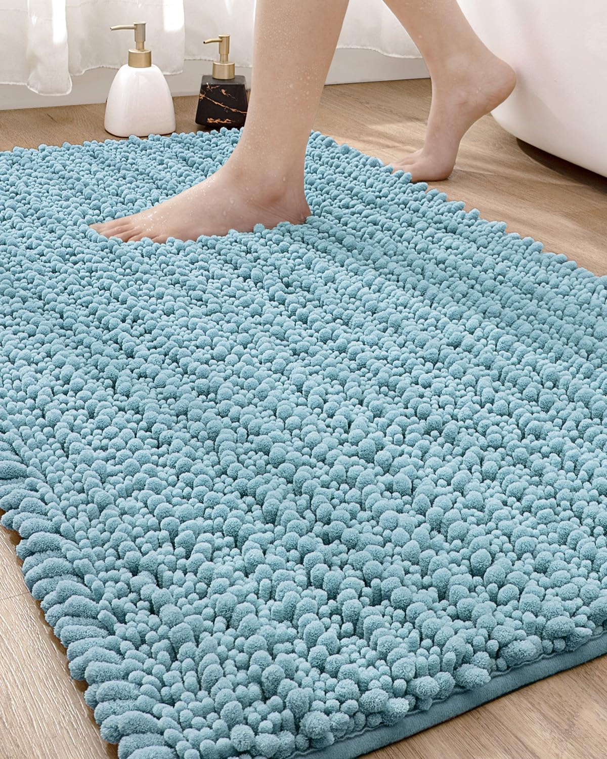 • Premium-Qualität: Der hellblaue Chenille-Badteppich ist aus hochwertigem Chenille gefertigt, er hat klare Vorteile in der Menge an Feuchtigkeit, die er aufnehmen kann, einfache Reinigung und Weichheit unter den Füssen.