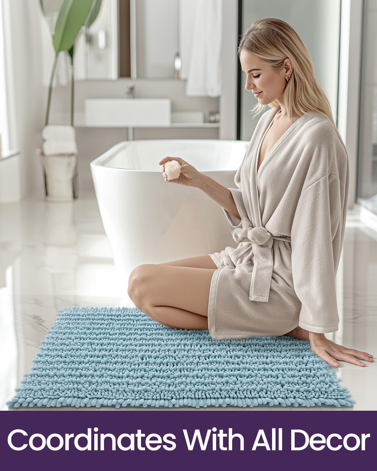 - Premium-Qualität: Der hellblaue Chenille-Badteppich ist aus hochwertigem Chenille gefertigt, er hat klare Vorteile in der Menge an Feuchtigkeit, die er aufnehmen kann, einfache Reinigung und Weichheit unter den Füssen.