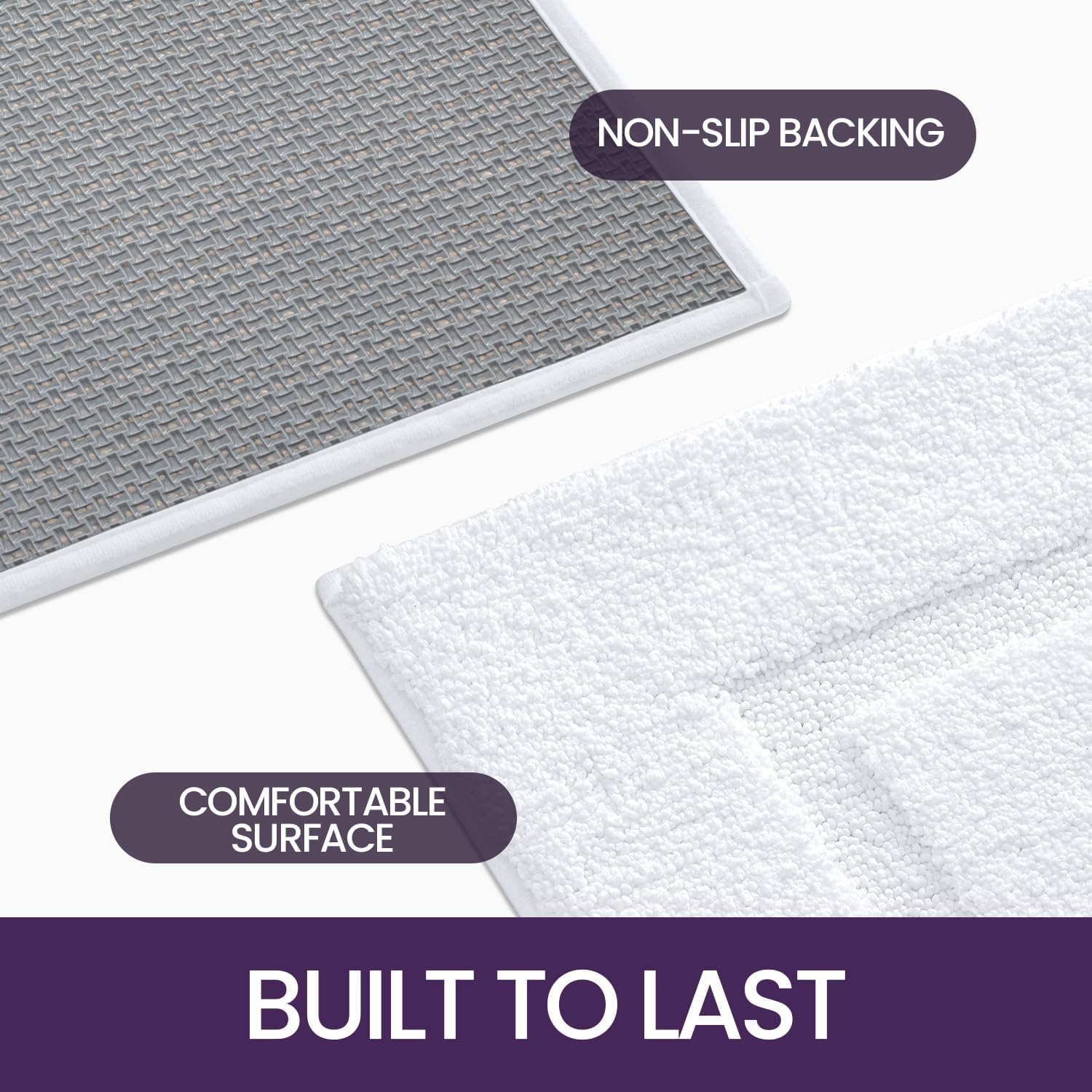 • 【Rutschfeste Unterseite】Die rutschfeste Unterseite besteht aus TPR-Material.Es hilft,den Badeteppich fest an ihrem Platz zu halten,ohne zu verrutschen.Stellen Sie sicher,dass der Boden unter dem Teppich trocken ist,um ein Verrutschen zu verhindern.