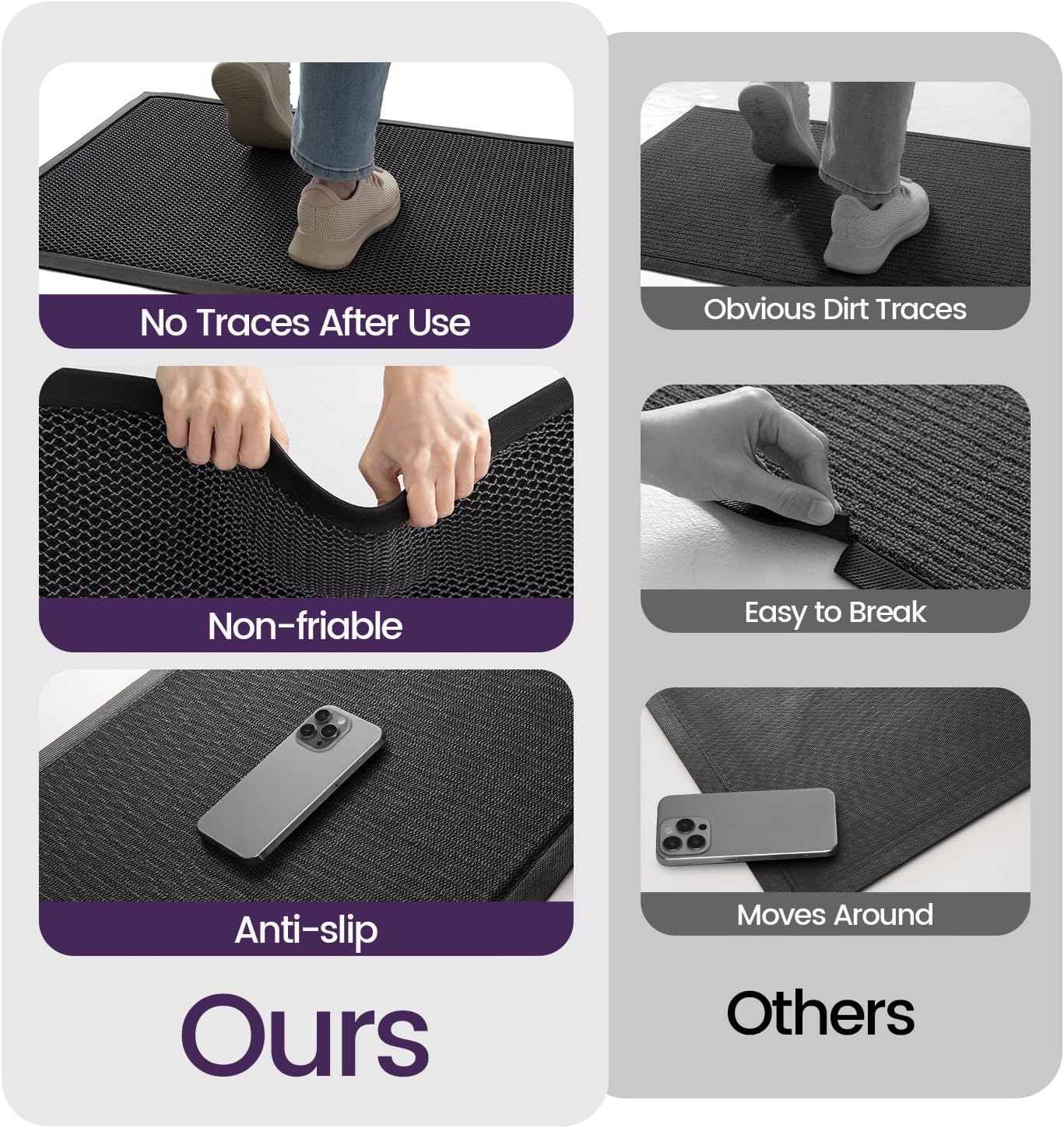 - Effiziente Staubentfernung: Das spezielle Design mit einem hohlen Mesh-System entfernt Schmutz, Sand und Schnee von den Schuhen und fängt den Dreck tief in der Matte auf. Diese fussmatte aussen nimmt Feuchtigkeit schnell auf und verhindert Pfützen im
