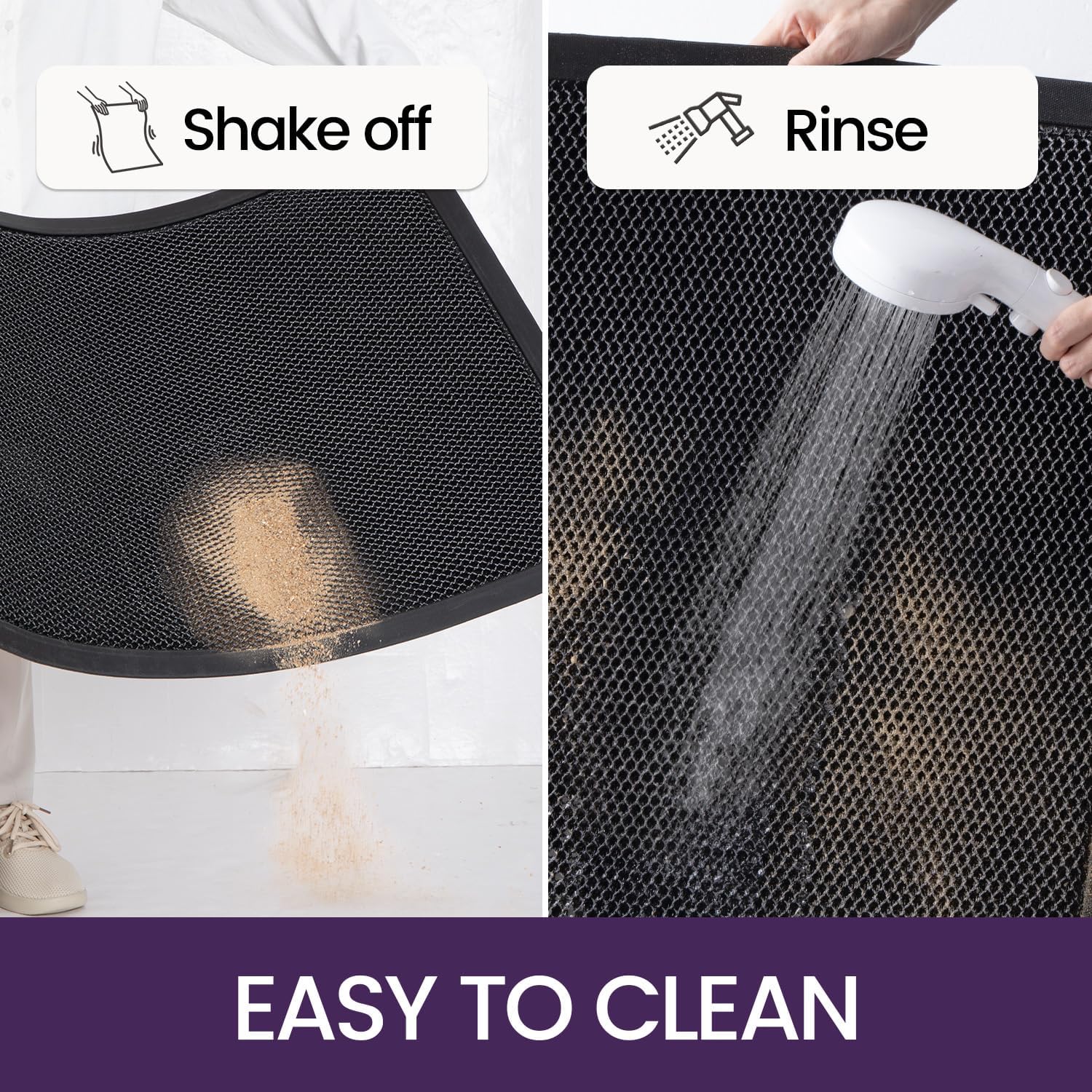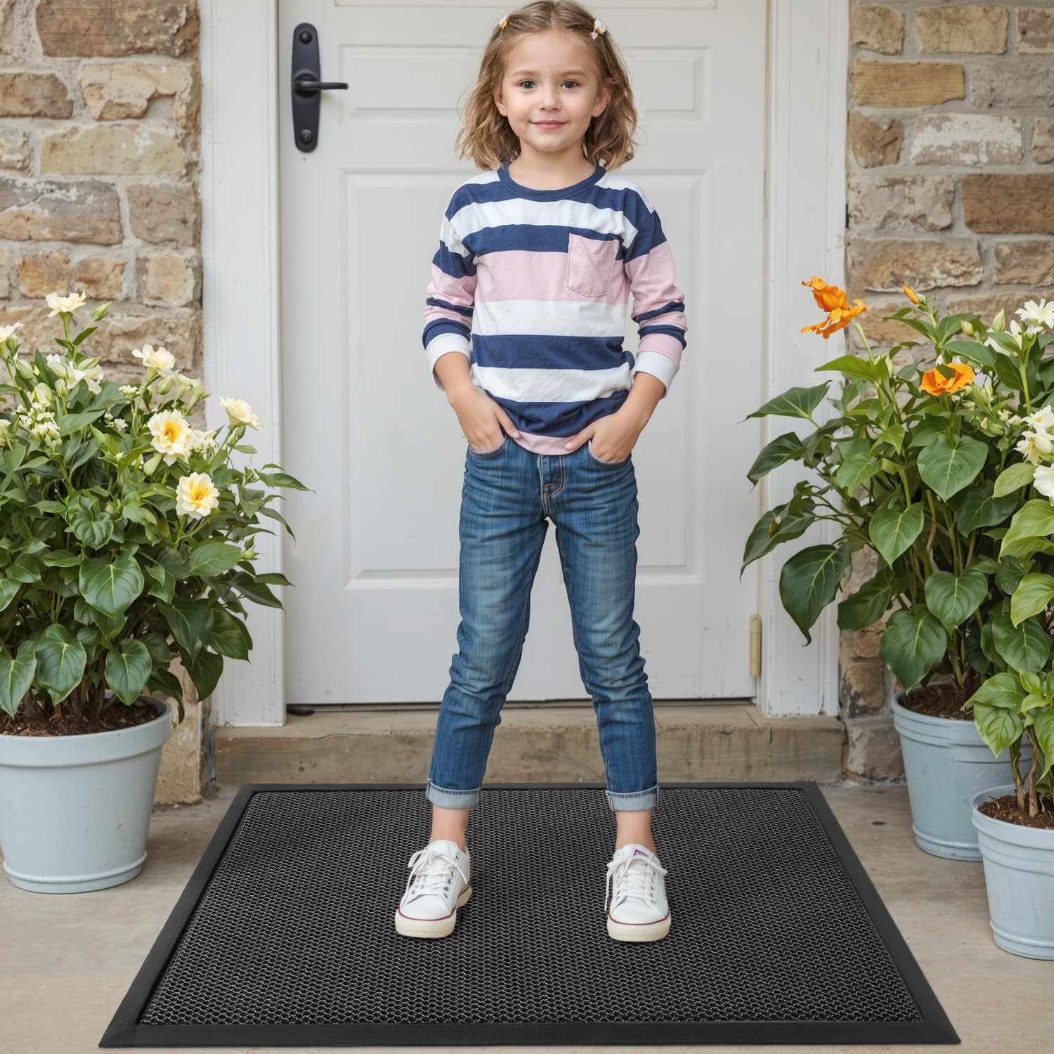 - Rutschfeste Unterseite: Die Fussmatte bleibt zuverlässig an ihrem Platz – auf Fliesen, Holz oder Beton. Ideal für stark frequentierte Eingangsbereiche. Sie wurde gegen Haustiere und Schnee getestet und hält dank des verstärkten Gummirückens sicher