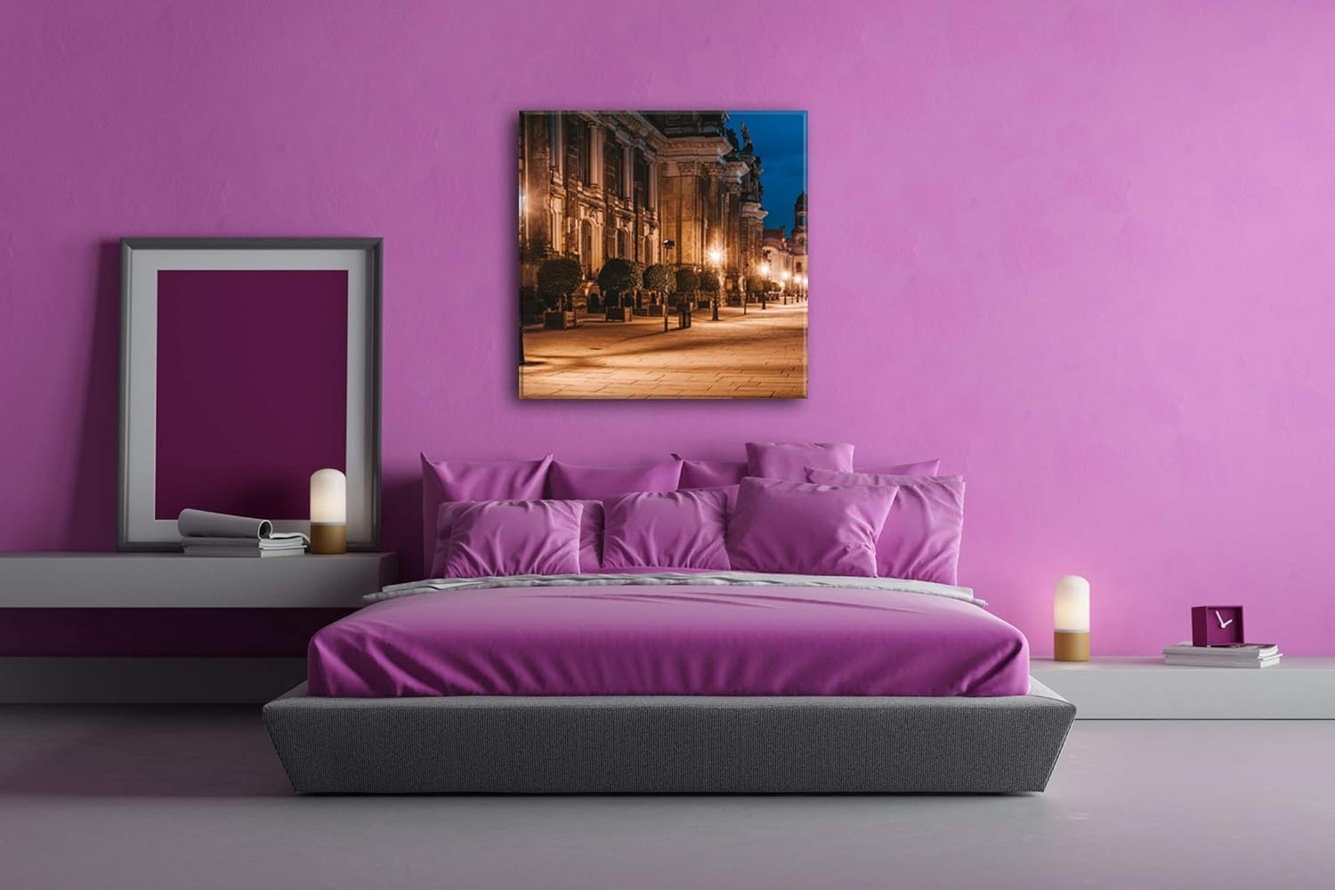 deyoli Abendstimmung am Elbufer in Dresden Format: 70x70 als Leinwand, Motiv fertig gerahmt auf Echt