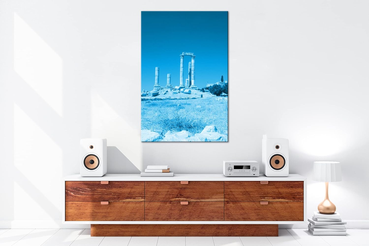 deyoli alte Ruine in Jordanien Format 100x70 Effekt: Monocrome Blau als Leinwandbild, Motiv fertig g