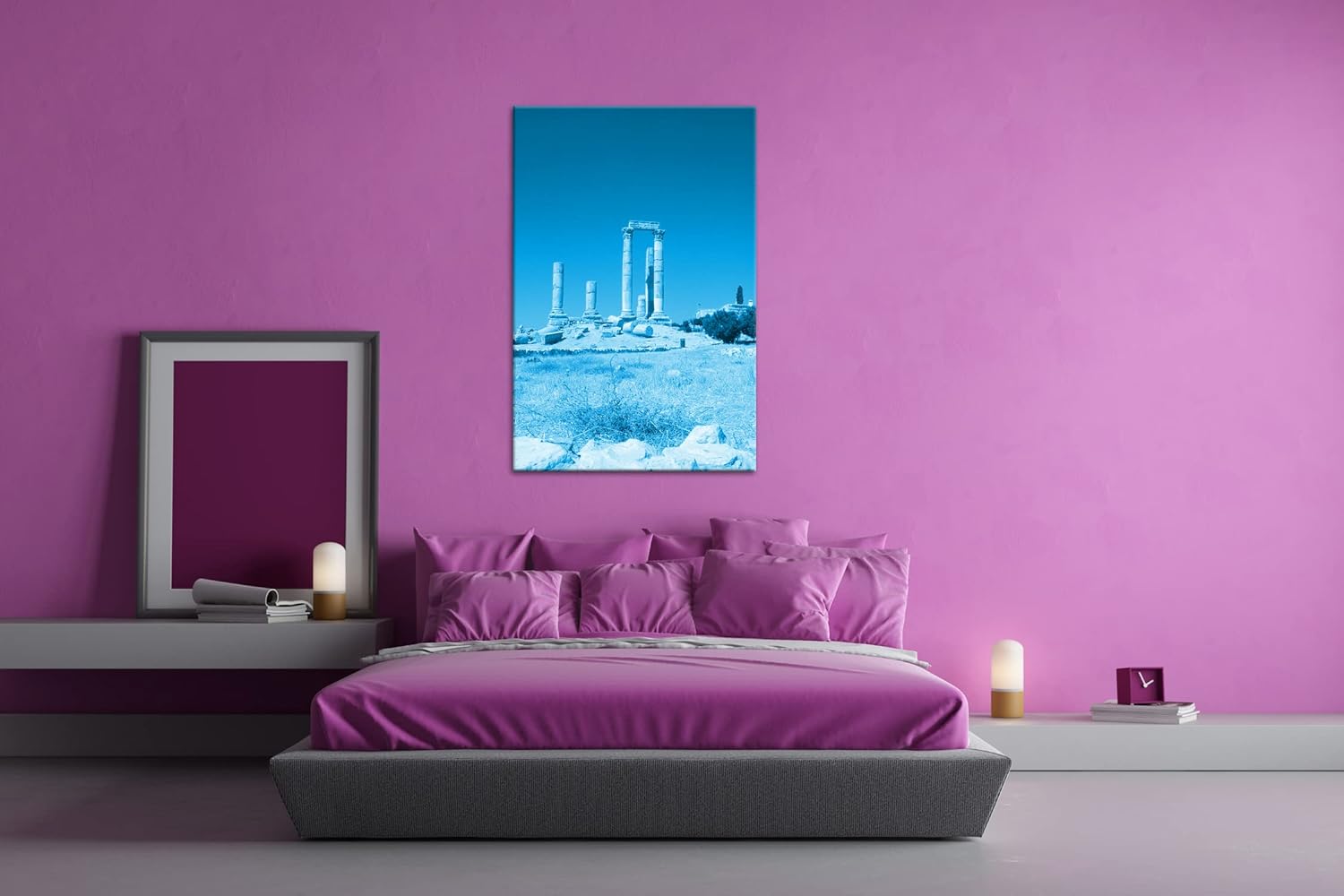 deyoli alte Ruine in Jordanien Format 80x60 Effekt: Monocrome Blau als Leinwandbild, Motiv fertig ge