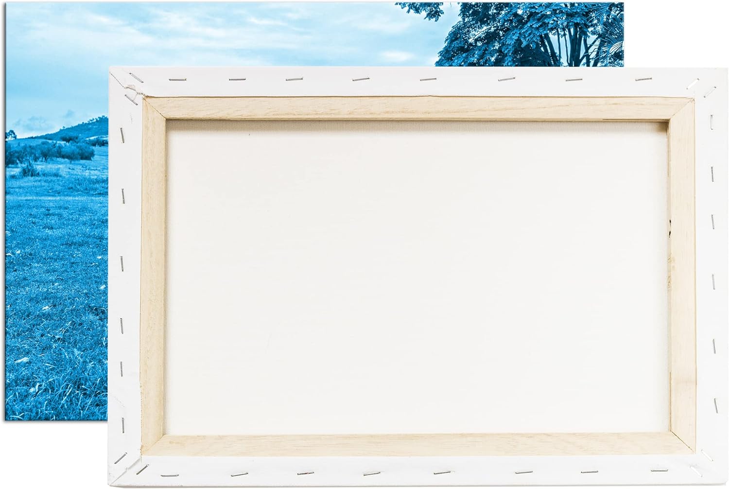 deyoli alter Mustang Format 80x60 Effekt: Monocrome Blau als Leinwandbild, Motiv fertig gerahmt auf