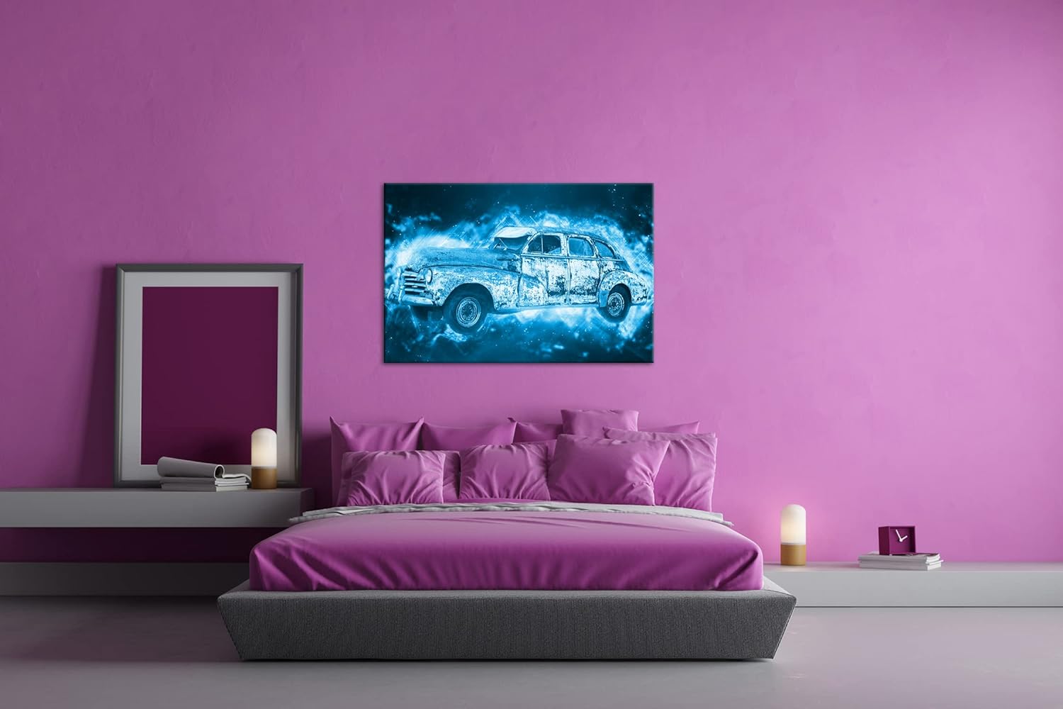 deyoli alter verrosteter Oldtimer Format 60x40 Effekt: Monocrome Blau als Leinwandbild, Motiv fertig