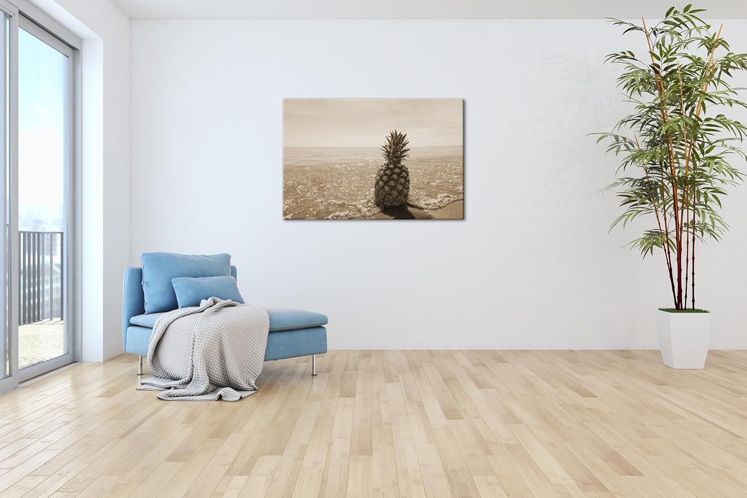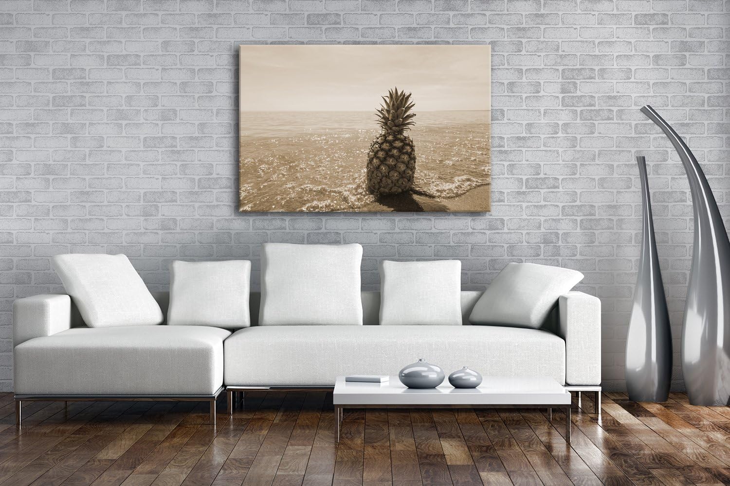 deyoli Ananas am Strand Format: 80x60 Effekt: Sepia als Leinwandbild, Motiv fertig gerahmt auf Echth