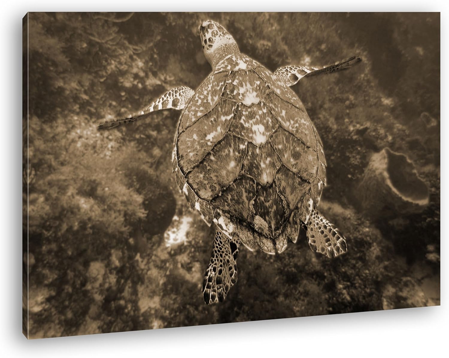 deyoli anmutige Schildkröte Format: 80x60 Effekt: Sepia als Leinwandbild, Motiv fertig gerahmt auf E