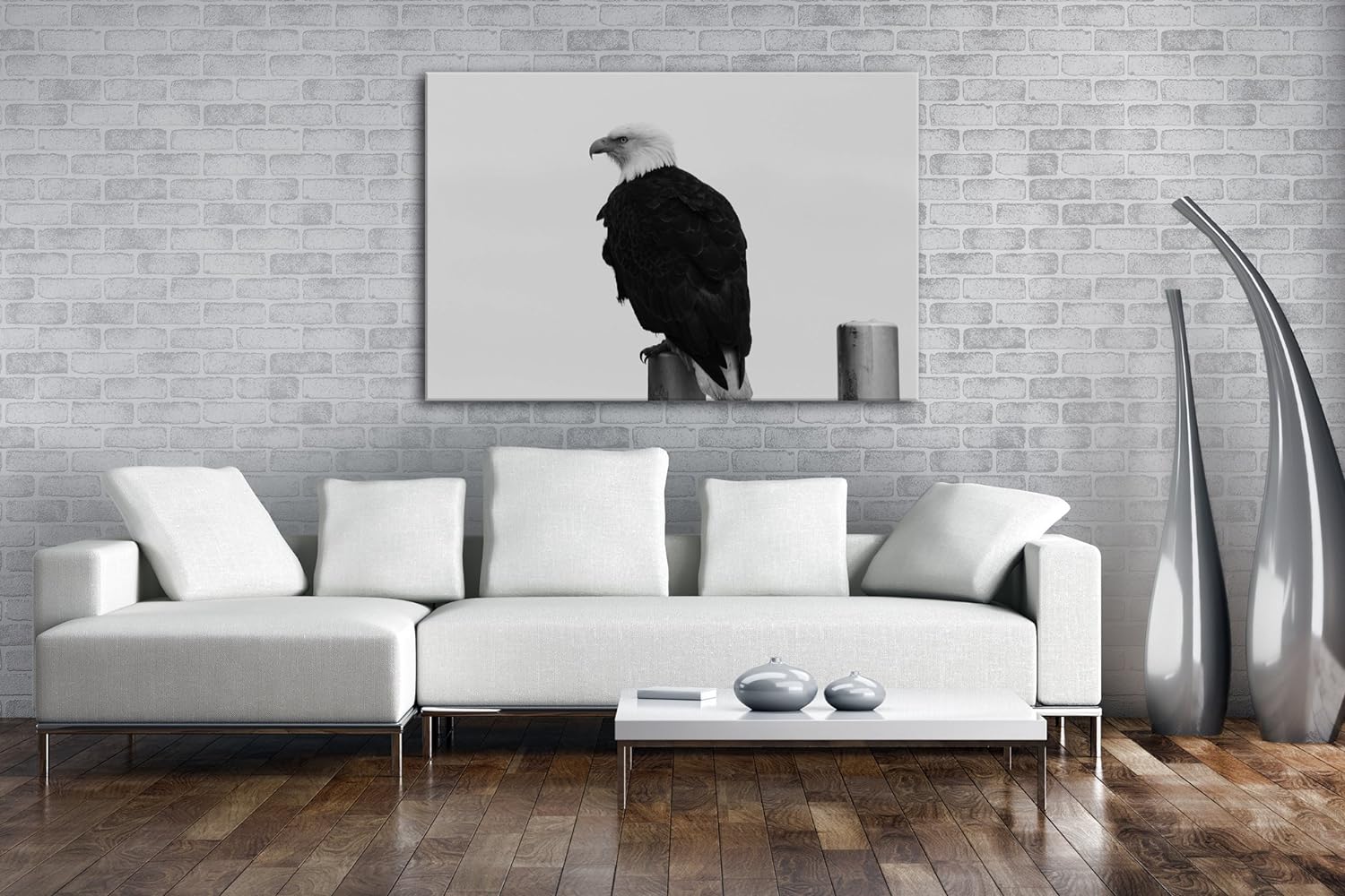 deyoli anmutiger Adler auf Einer Stange Effekt: Schwarz/Weiss Format: 80x60 als Leinwandbild, Motiv