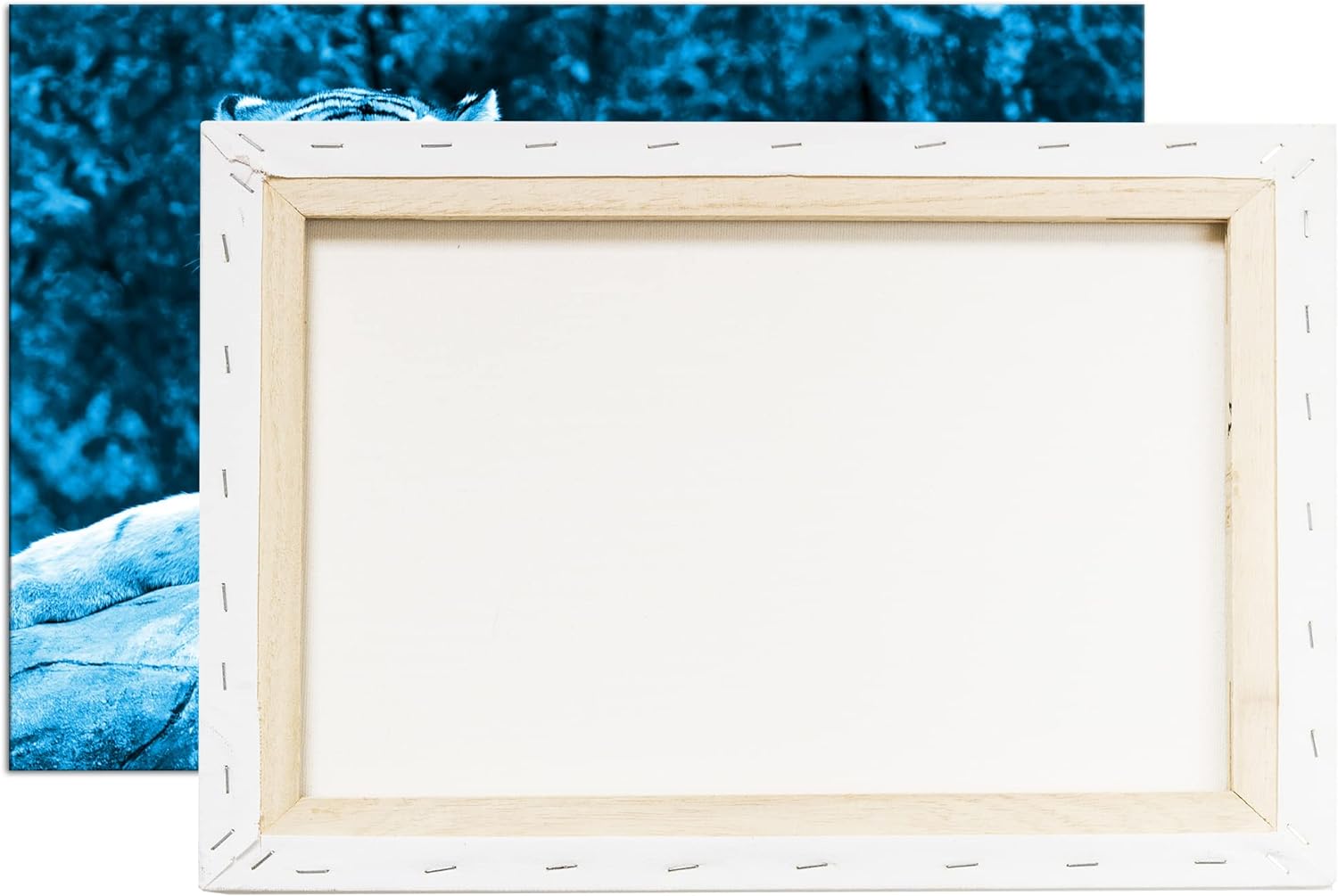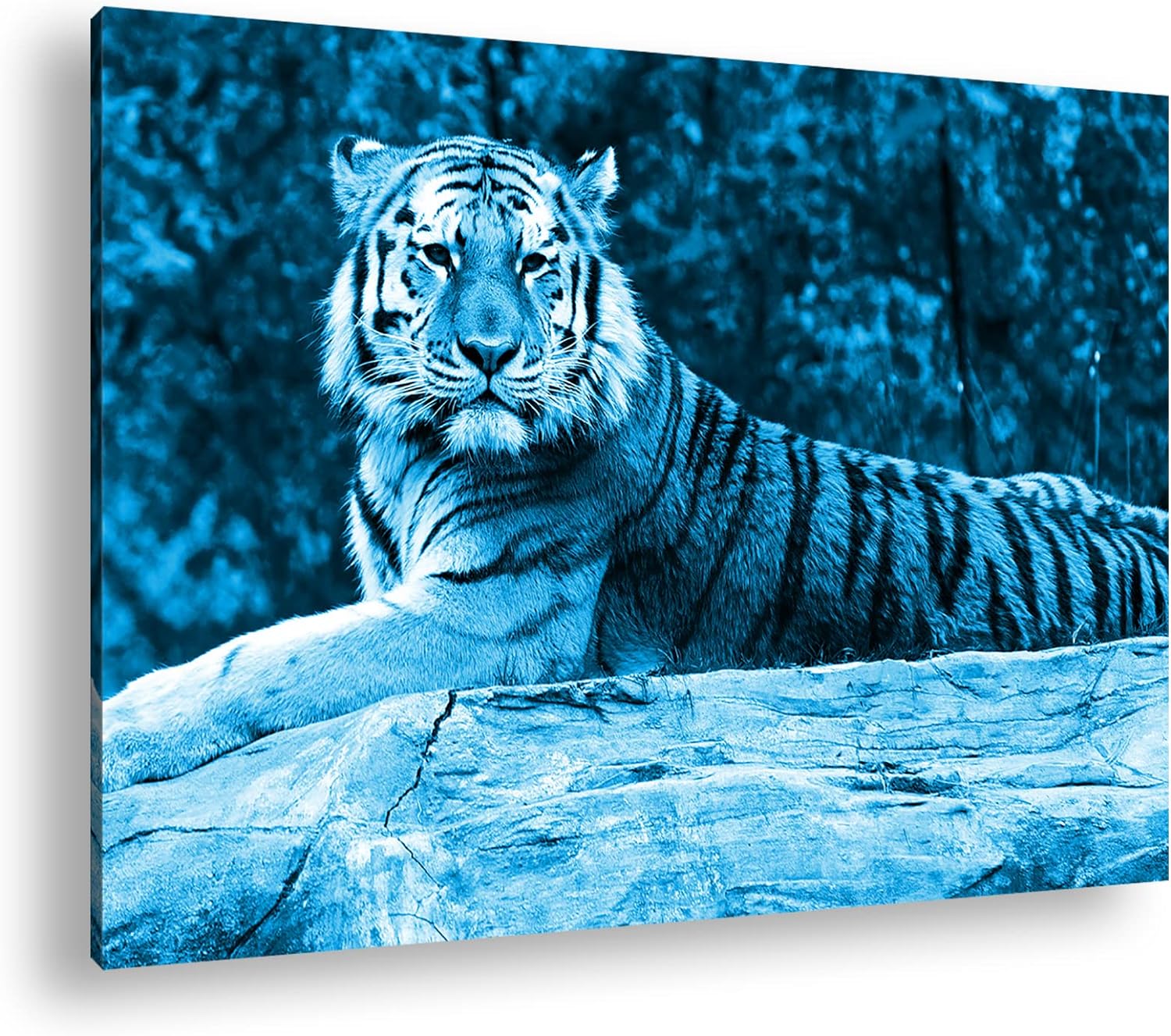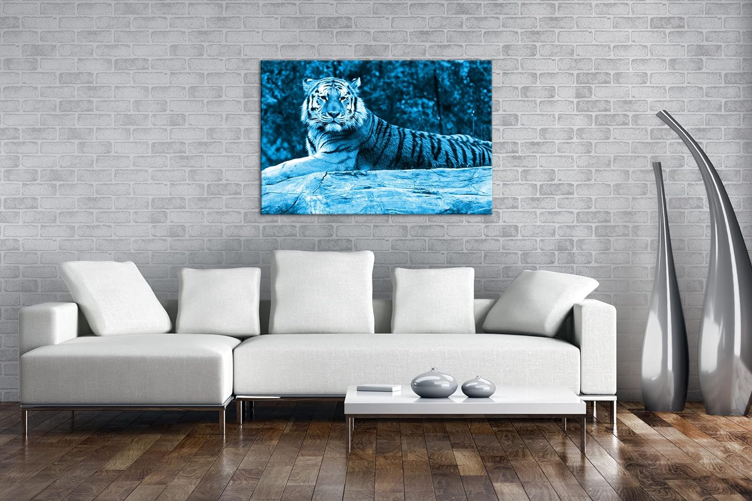 deyoli anmutiger ruhiger Tiger Format 80x60 Effekt: Monocrome Blau als Leinwandbild, Motiv fertig ge