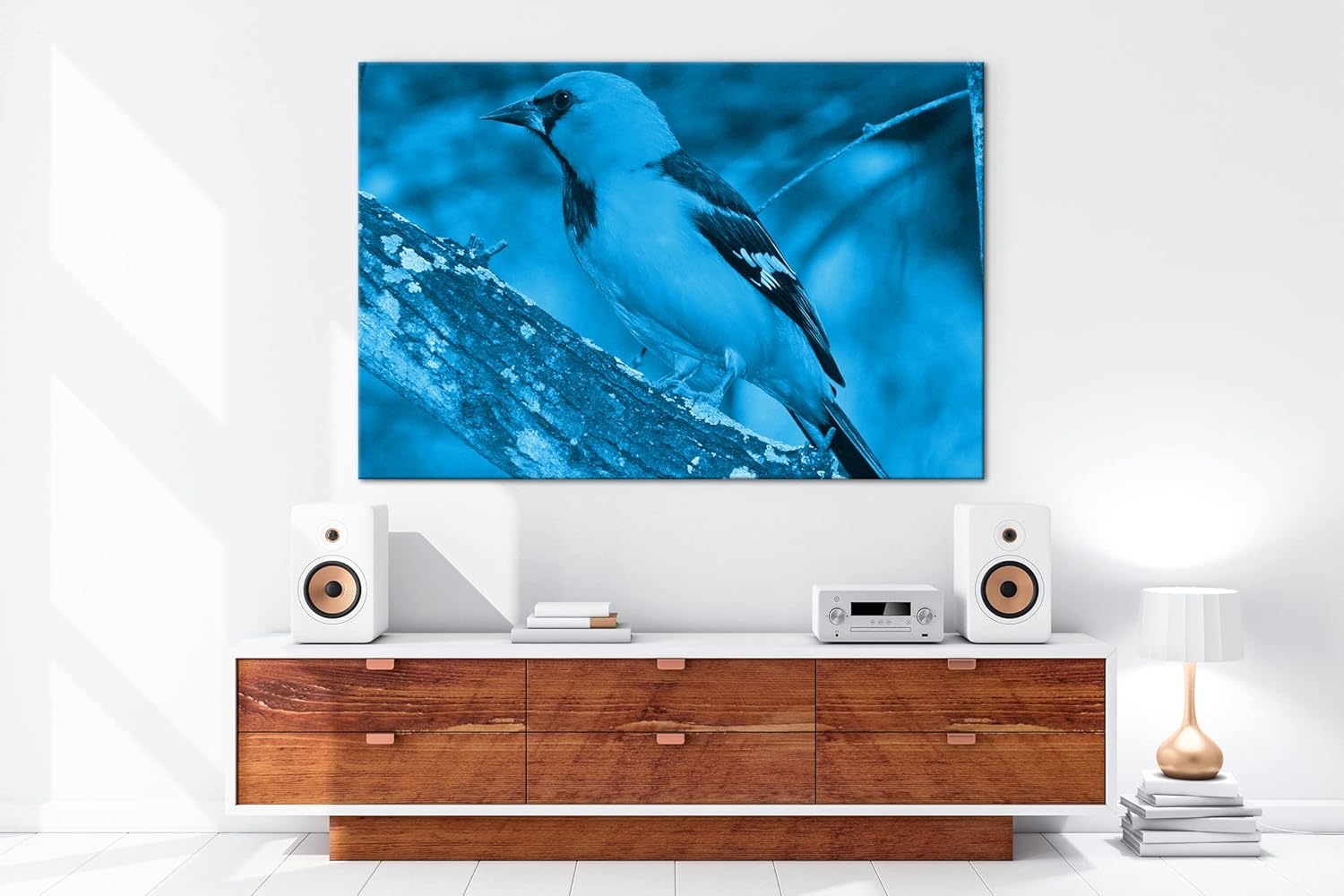 deyoli Anmutiger Vogel Format: 100x70 Effekt: Monocrome Blau als Leinwandbild, Motiv fertig gerahmt