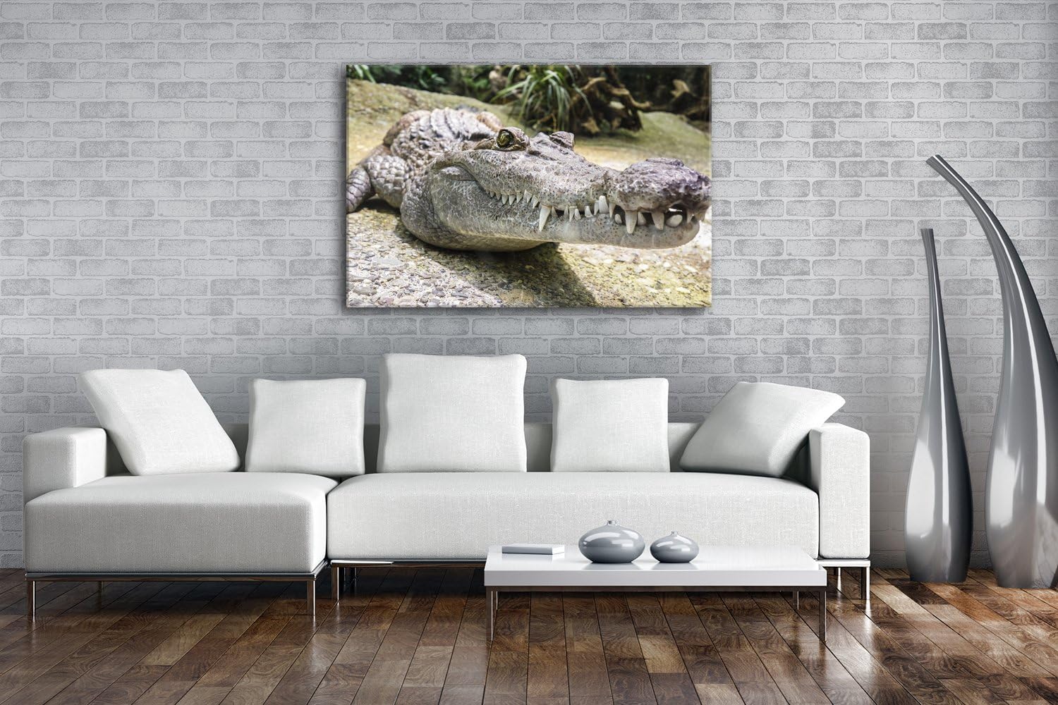 deyoli Anmutiges Krokodil Format: 80x60 als Leinwandbild, Motiv fertig gerahmt auf Echtholzrahmen, H