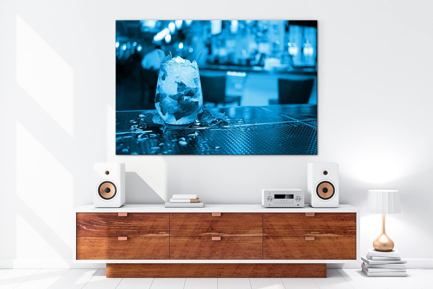 deyoli appetitlicher Mojito Format 80x60 Effekt: Monocrome Blau als Leinwandbild, Motiv fertig gerah
