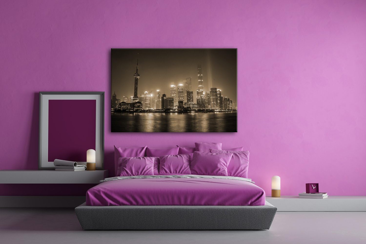 deyoli atemberaubende Shanghai Skyline Format: 80x60 Effekt: Sepia als Leinwandbild, Motiv fertig ge