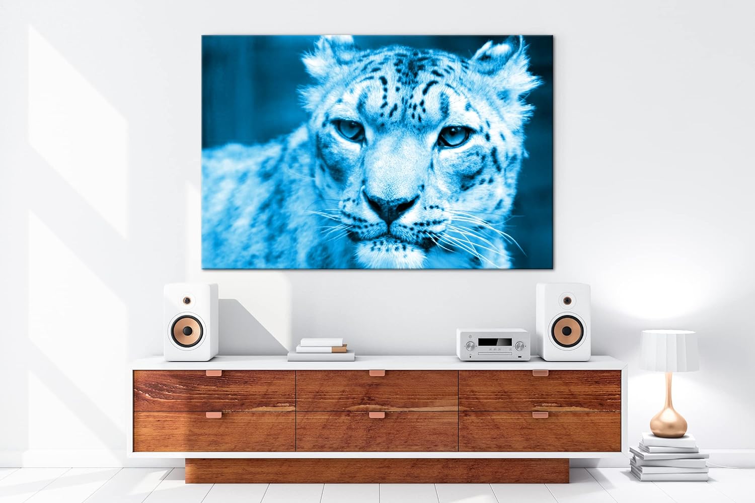 deyoli aufmerksamer Schneeleopard Format 80x60 Effekt: Monocrome Blau als Leinwandbild, Motiv fertig