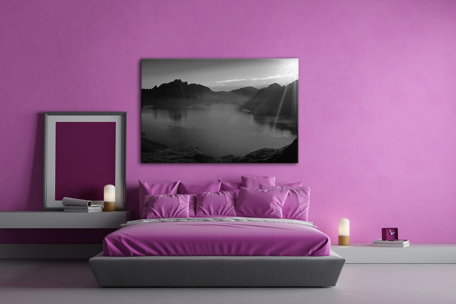 deyoli Berglandschaft mit schönem Sonnenuntergang Effekt: Schwarz/Weiss im Format: 100x70 als Leinwa