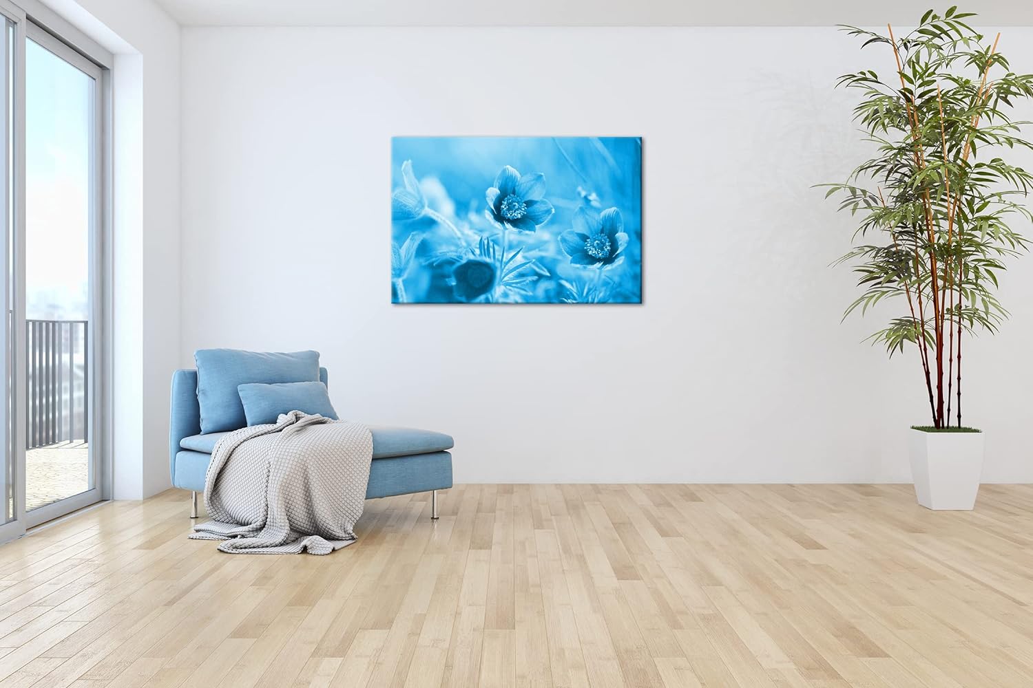 deyoli bezaubernde Blumen Format 80x60 Effekt: Monocrome Blau als Leinwandbild, Motiv fertig gerahmt
