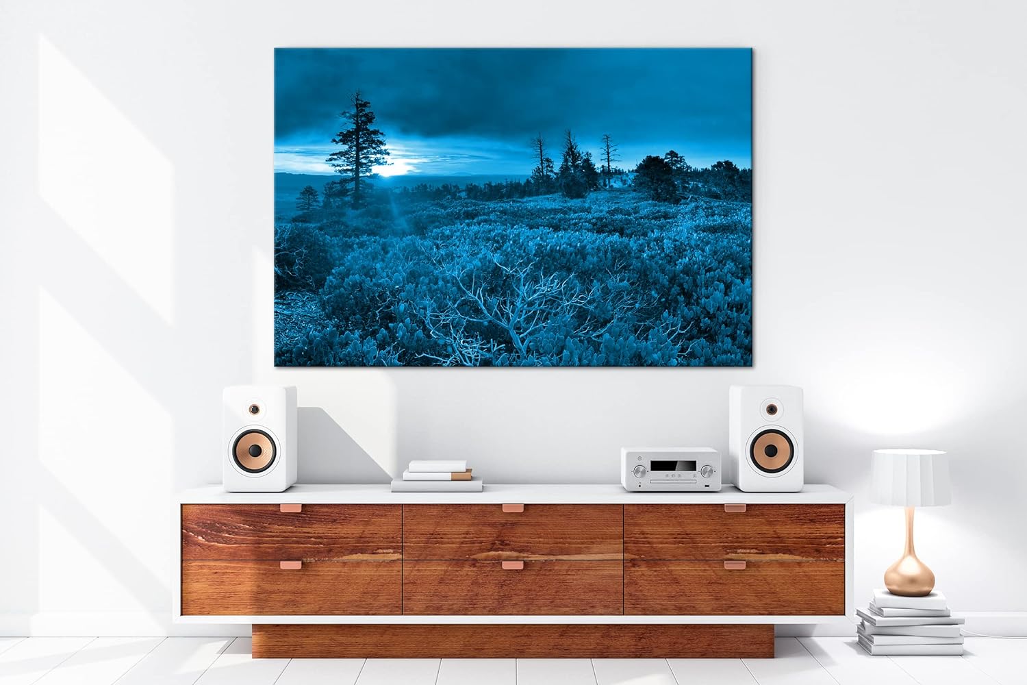 deyoli bezauberte Landschaft bei Sonnenaufgang Format: 80x60 Effekt: Monocrome Blau als Leinwand, Mo