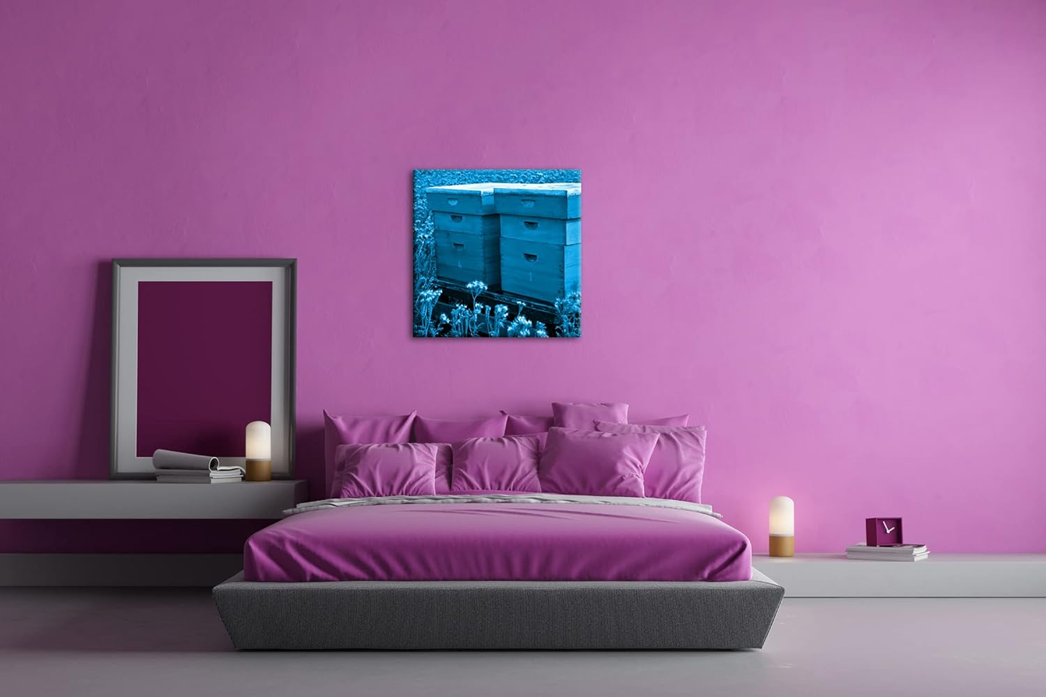 deyoli Bienenstock auf der Blumenwiese Format: 40x40 Effekt: Monocrome Blau als Leinwand, Motiv fert