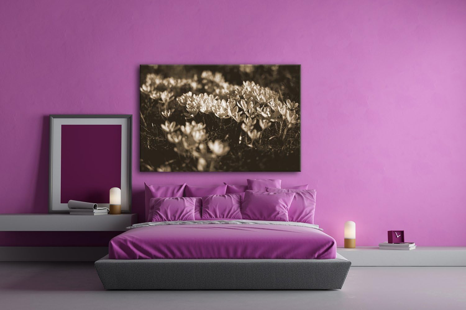 deyoli blühende Krokusse Format: 100x70 Effekt: Sepia als Leinwand, Motiv fertig gerahmt auf Echthol