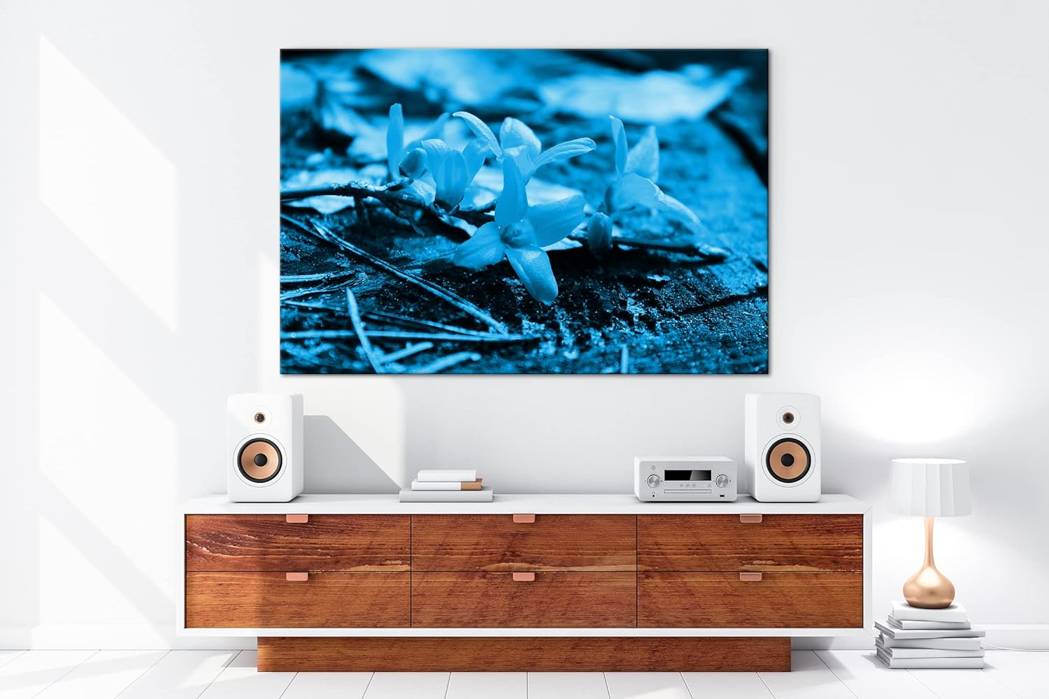 deyoli blühender Osterstrauch Format 80x60 Effekt: Monocrome Blau als Leinwandbild, Motiv fertig ger