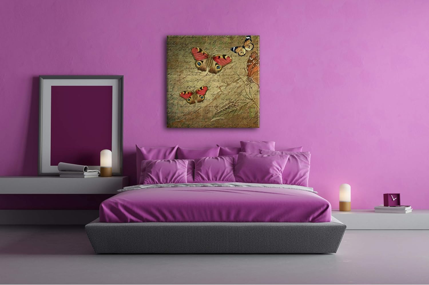 deyoli Briefpapier mit Schmetterlingen Format: 70x70 als Leinwand, Motiv fertig gerahmt auf Echtholz