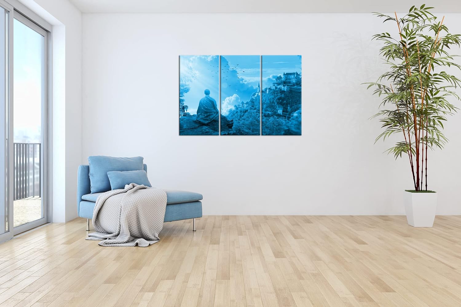 deyoli Buddhistischer Mönch Format: 120x80 3Teilig Effekt: Monocrome Blau als Leinwandbild, Motiv fe