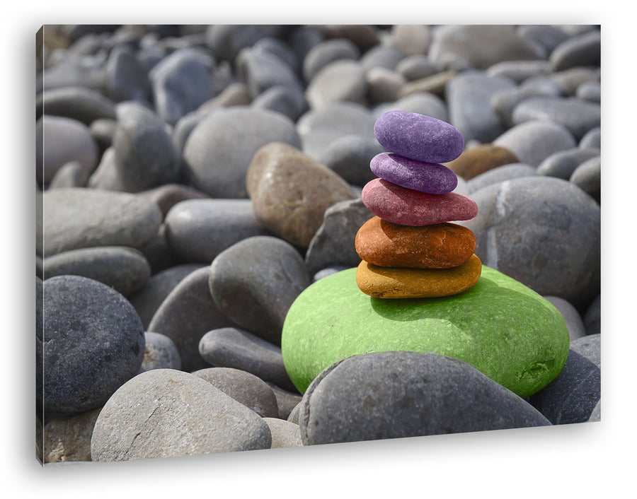 deyoli bunte Meditations Steine Format: 100x70 als Leinwandbild, Motiv fertig gerahmt auf Echtholzra