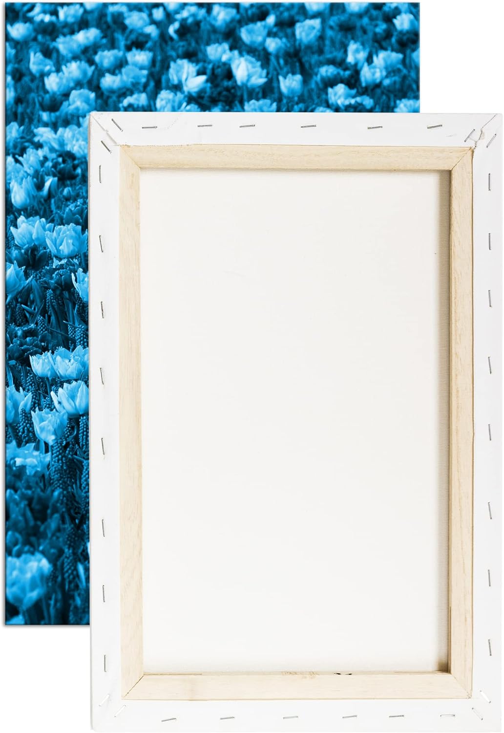 deyoli buntes Blumenfeld Format 80x60 Effekt: Monocrome Blau als Leinwandbild, Motiv fertig gerahmt