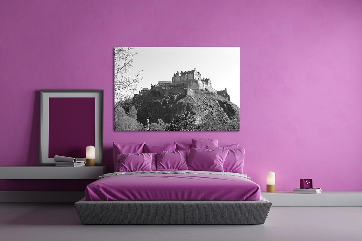 deyoli Burg in Edinburgh Schottland Effekt: Schwarz/Weiss Format: 80x60 als Leinwandbild, Motiv fert