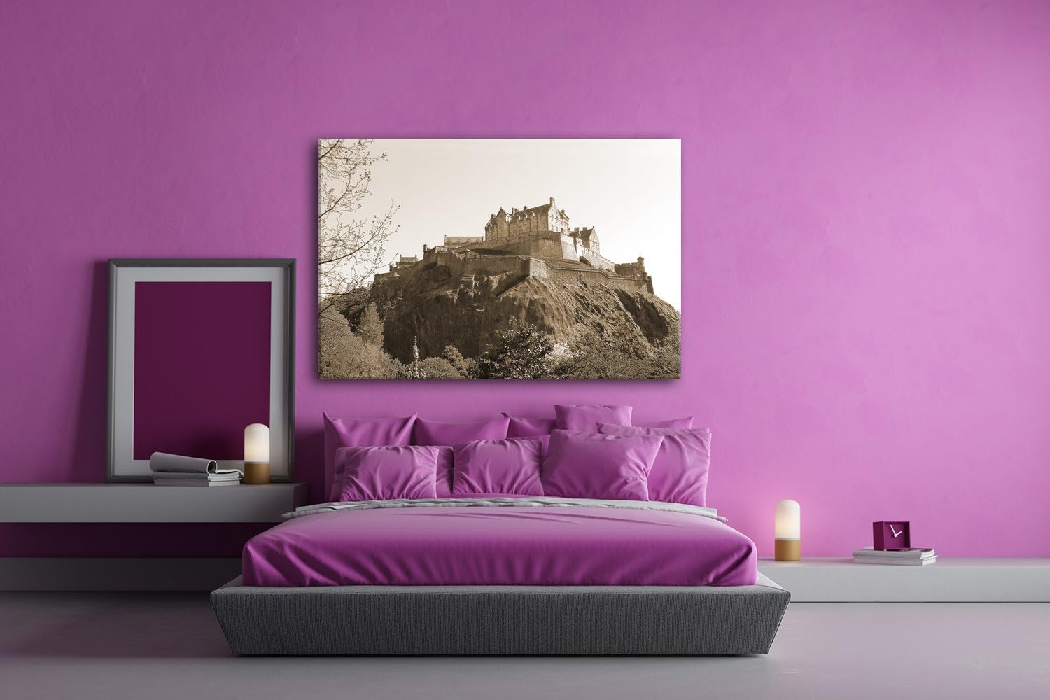 deyoli Burg in Edinburgh Schottland Format: 80x60 Effekt: Sepia als Leinwandbild, Motiv fertig gerah