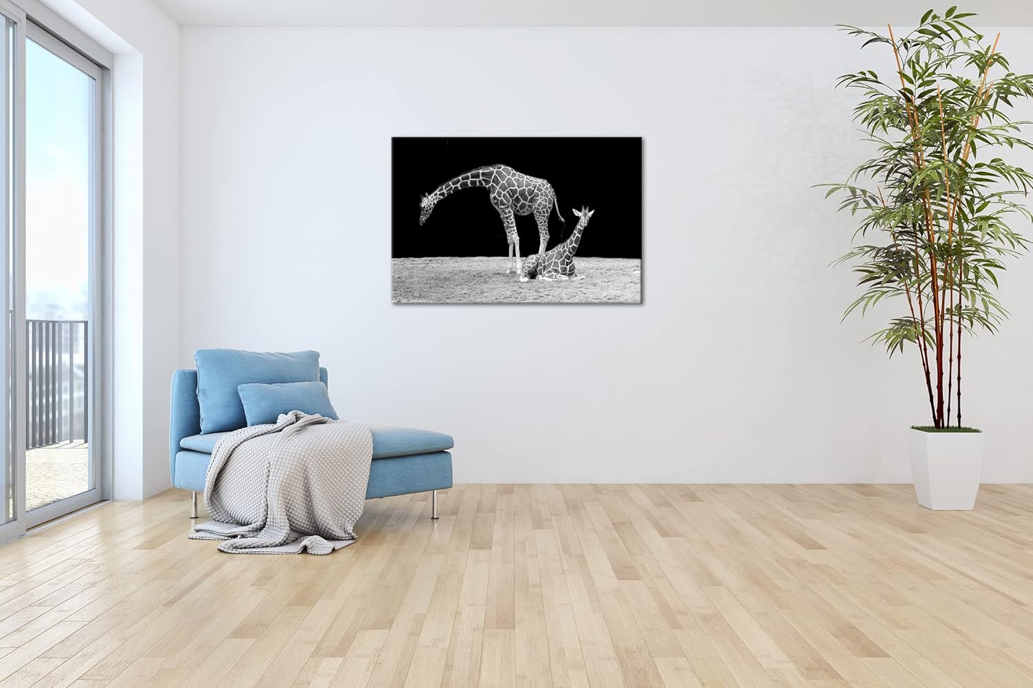 deyoli Dark entspannte Giraffen Format: 100x70 als Leinwand, Motiv fertig gerahmt auf Echtholzrahmen