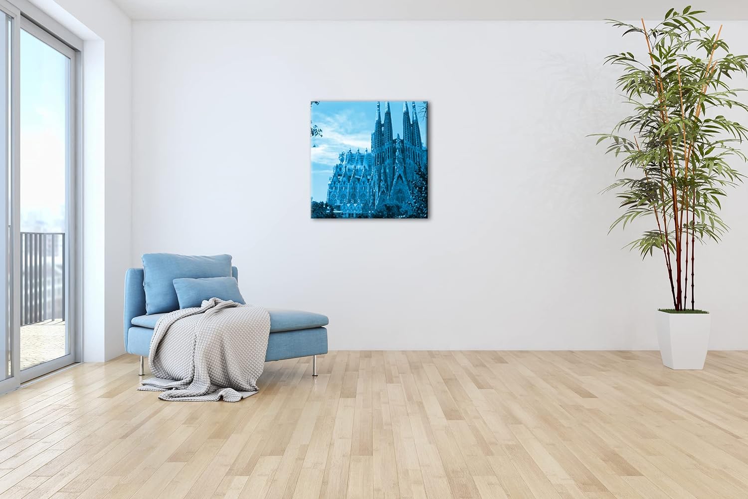 deyoli die Kathedrale Sagrada Familia in Barcelona Format: 70x70 Effekt: Monocrome Blau als Leinwand