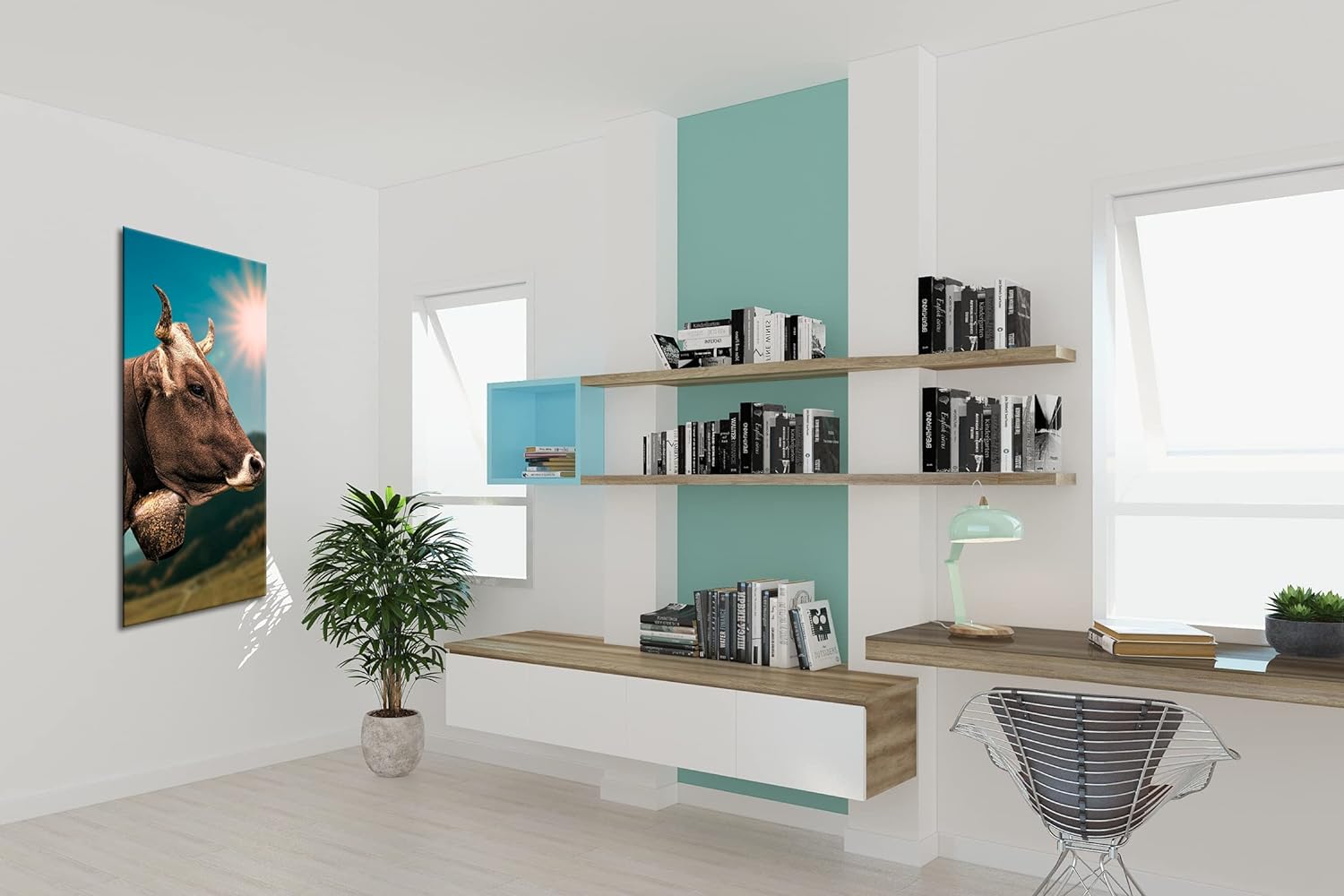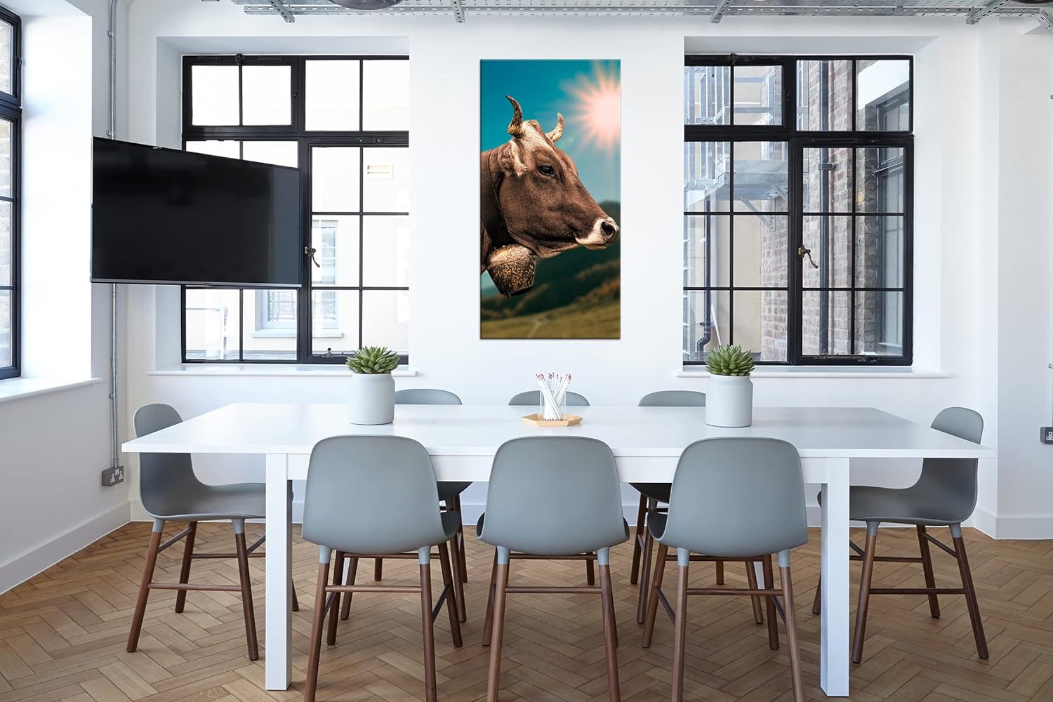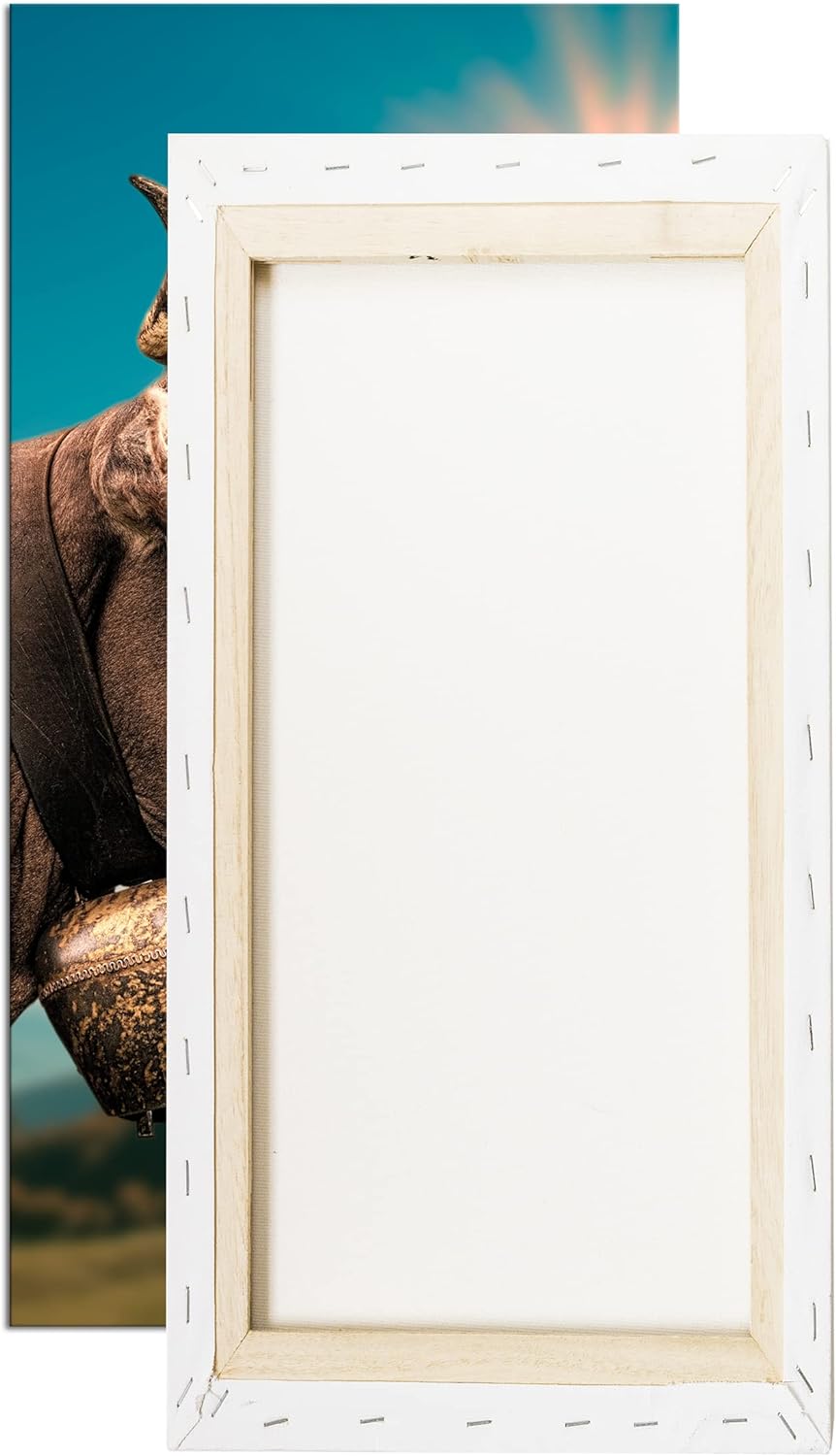 deyoli edle Alpen Kuh Panorama 80x40 cm als Leinwandbild, Motiv fertig gerahmt auf Echtholzrahmen, H